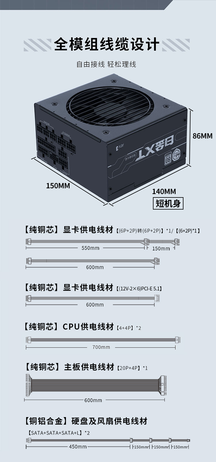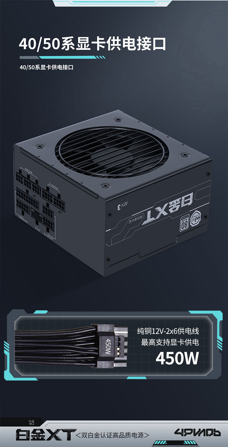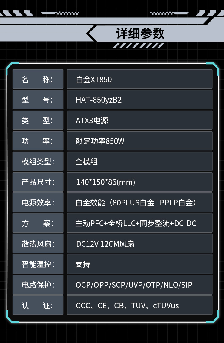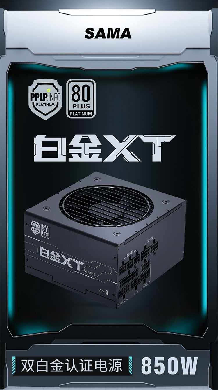 先馬(SAMA)白金XT850W ATX3電腦電源 80PLUS/PPLP雙白金/12V-2x6/臺系大電容/壓紋線/穩壓5070Ti 9070XT