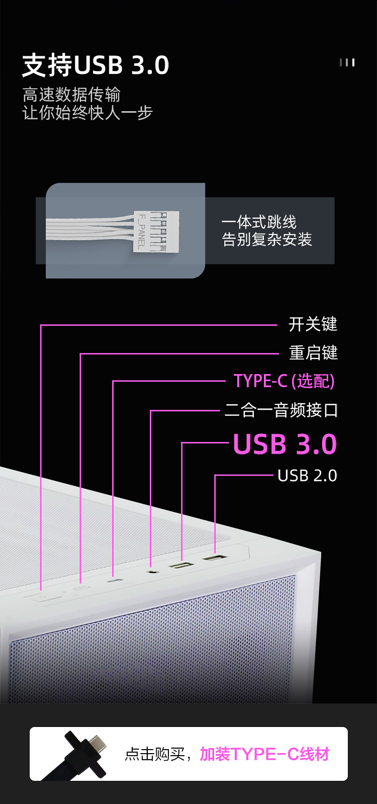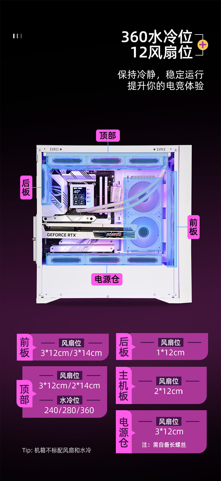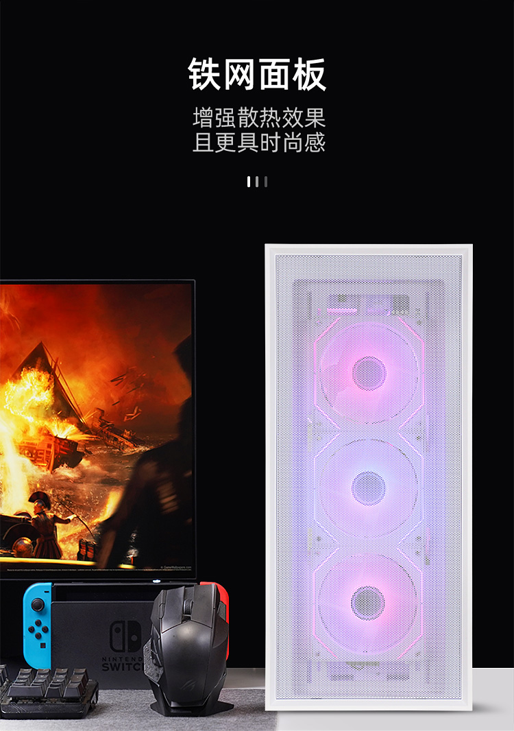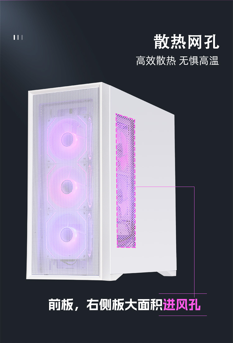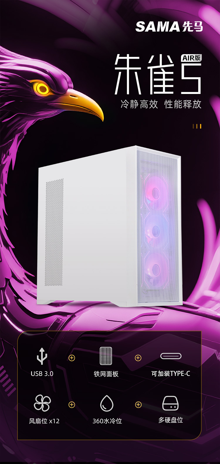 先馬(SAMA)朱雀5 Air 白 臺式電腦ATX散熱機箱 前板網孔進風/12個風扇位/360水冷位/430mm顯卡/Type-C預留孔