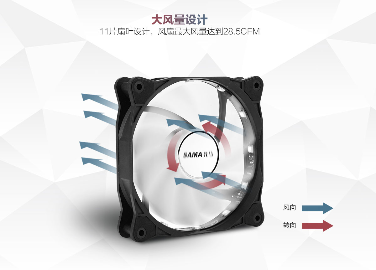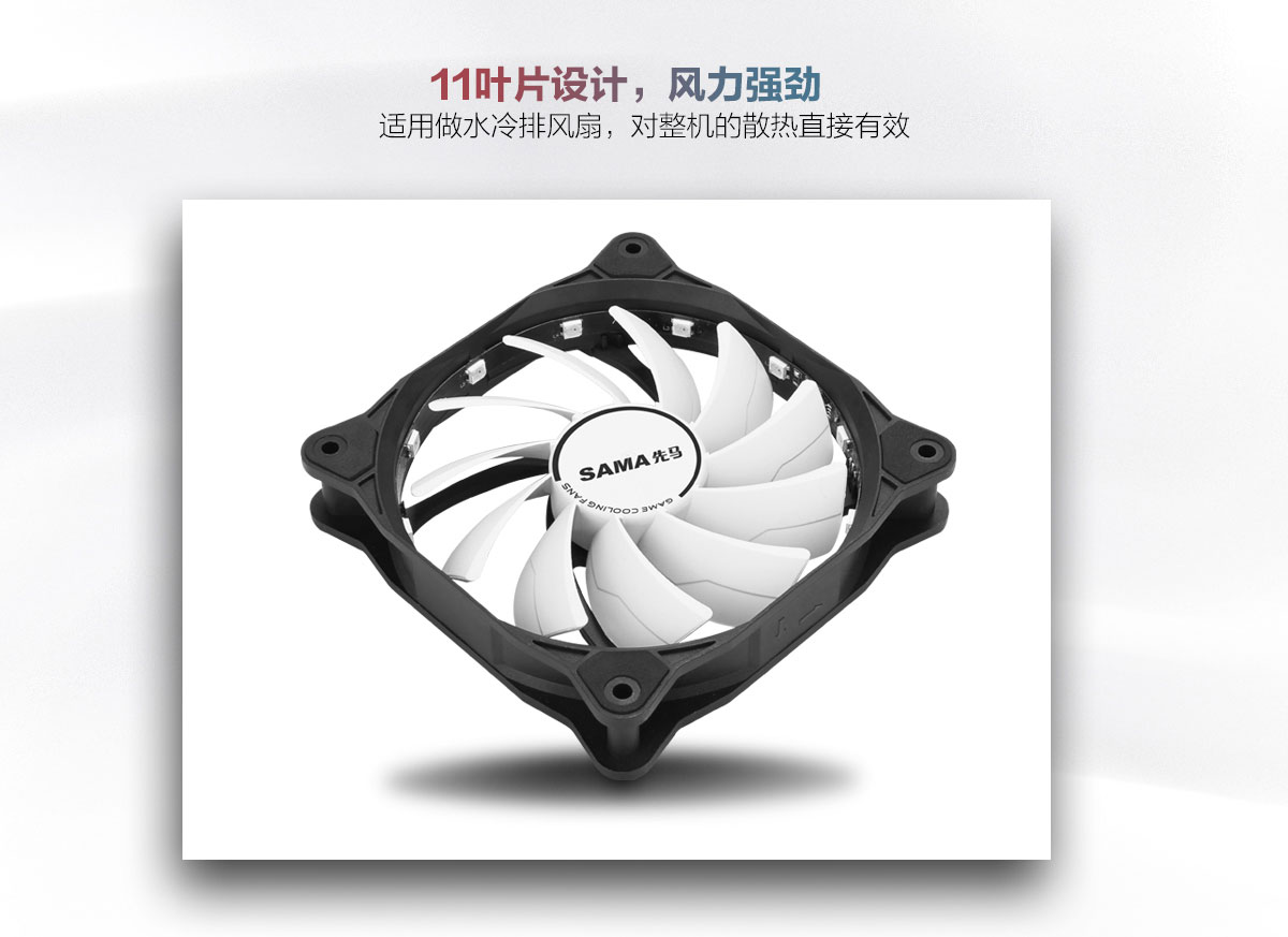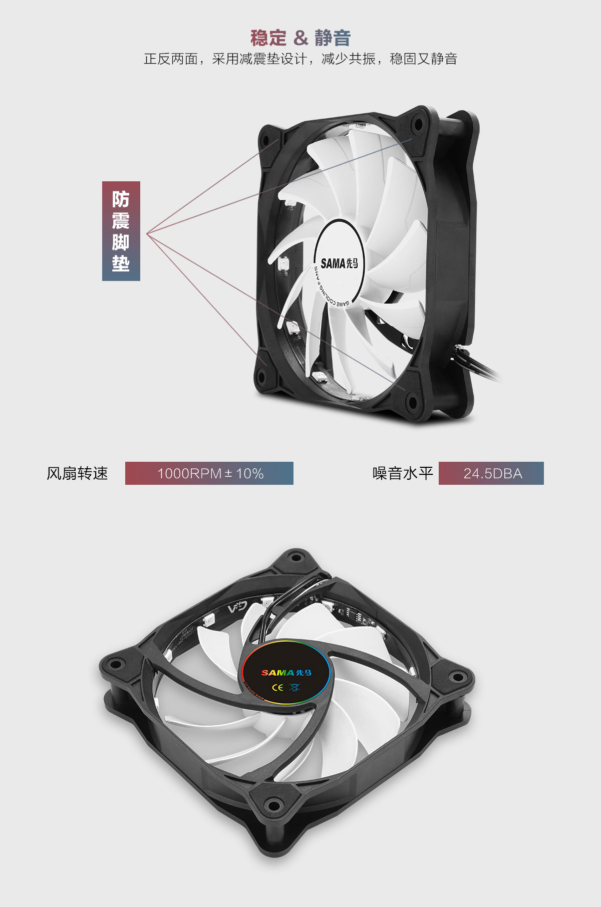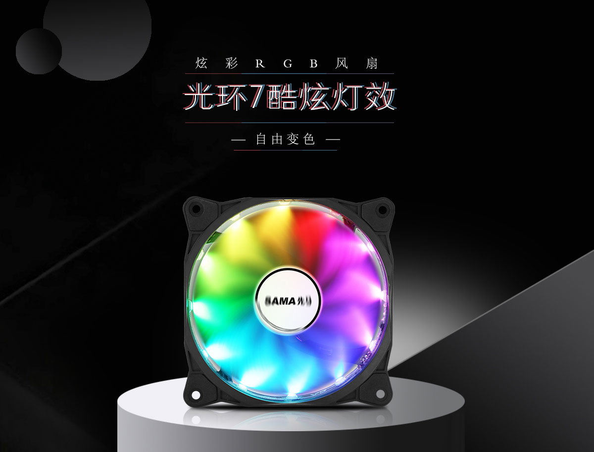 先馬SAMA 光環7 炫彩RGB風扇(炫彩液壓風扇,多重燈光效果,長線材)光環7炫酷燈效,自由變換