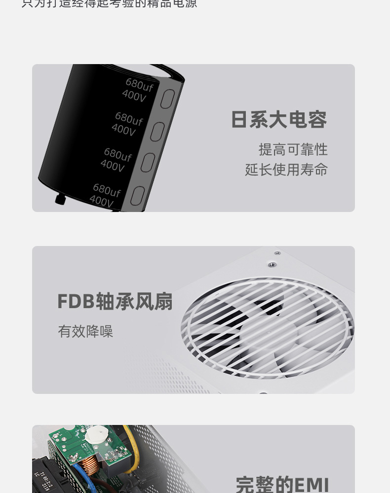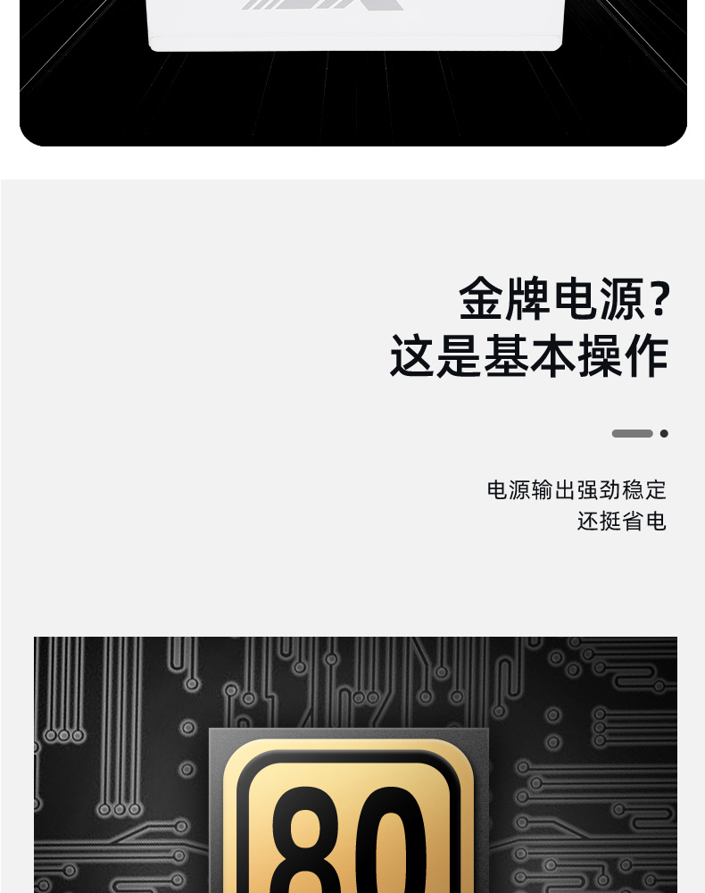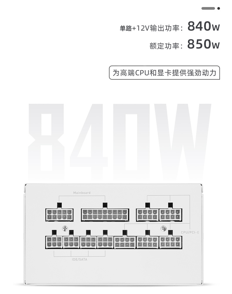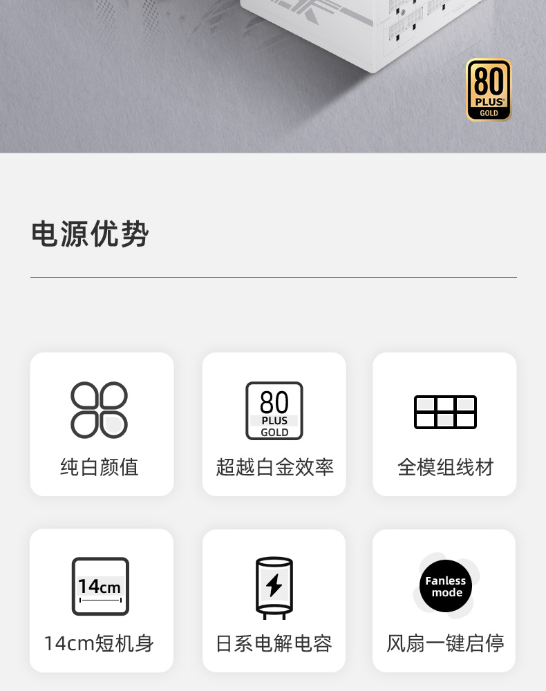 額定850W,80PLUS金牌認證,全能模組,高品質(zhì)日系大電容,風扇一鍵啟停