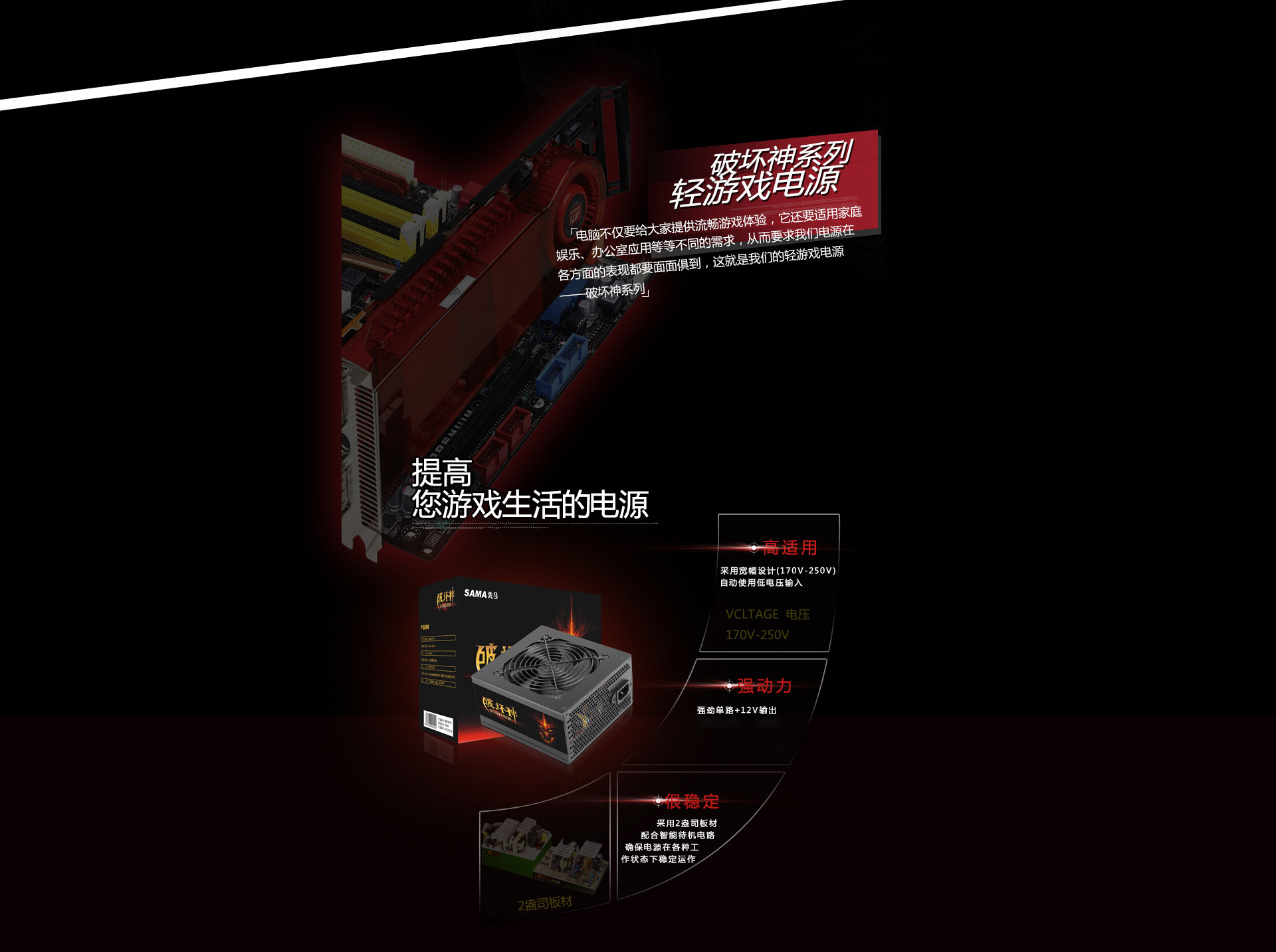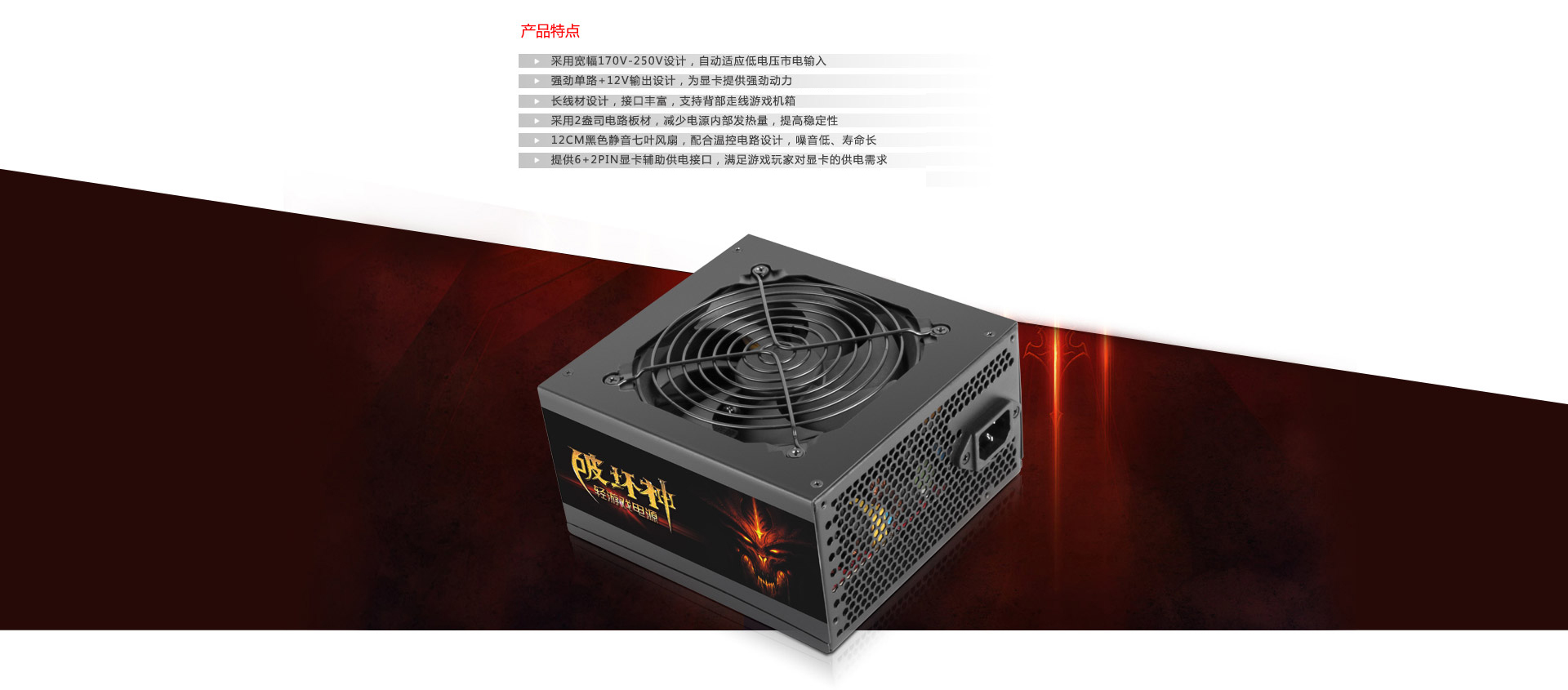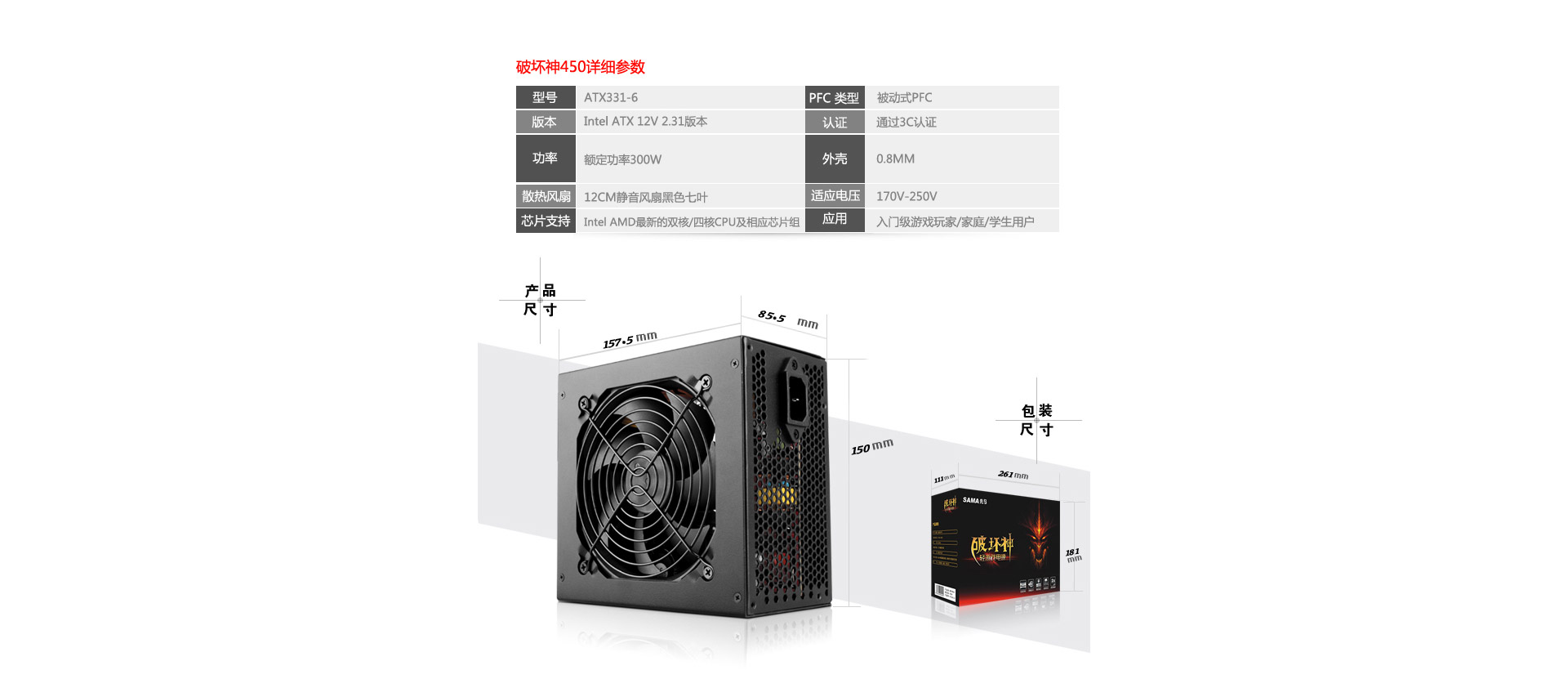 先馬SAMA 破壞神450入門游戲電源(額定300W,被動PFC,單路+12V輸出,2盎司板材,U3電源)實標功率,170V-240V寬幅設計,高適應,強動力,很穩定,入門游戲電源