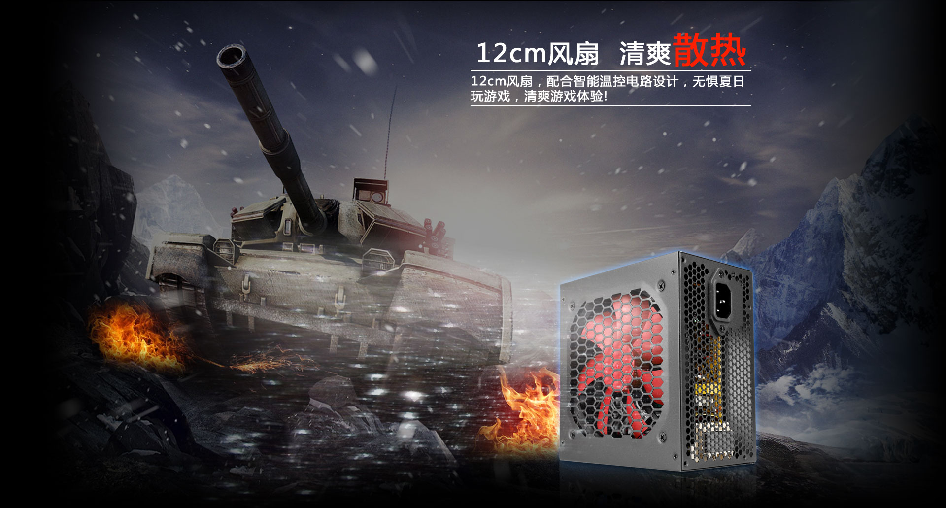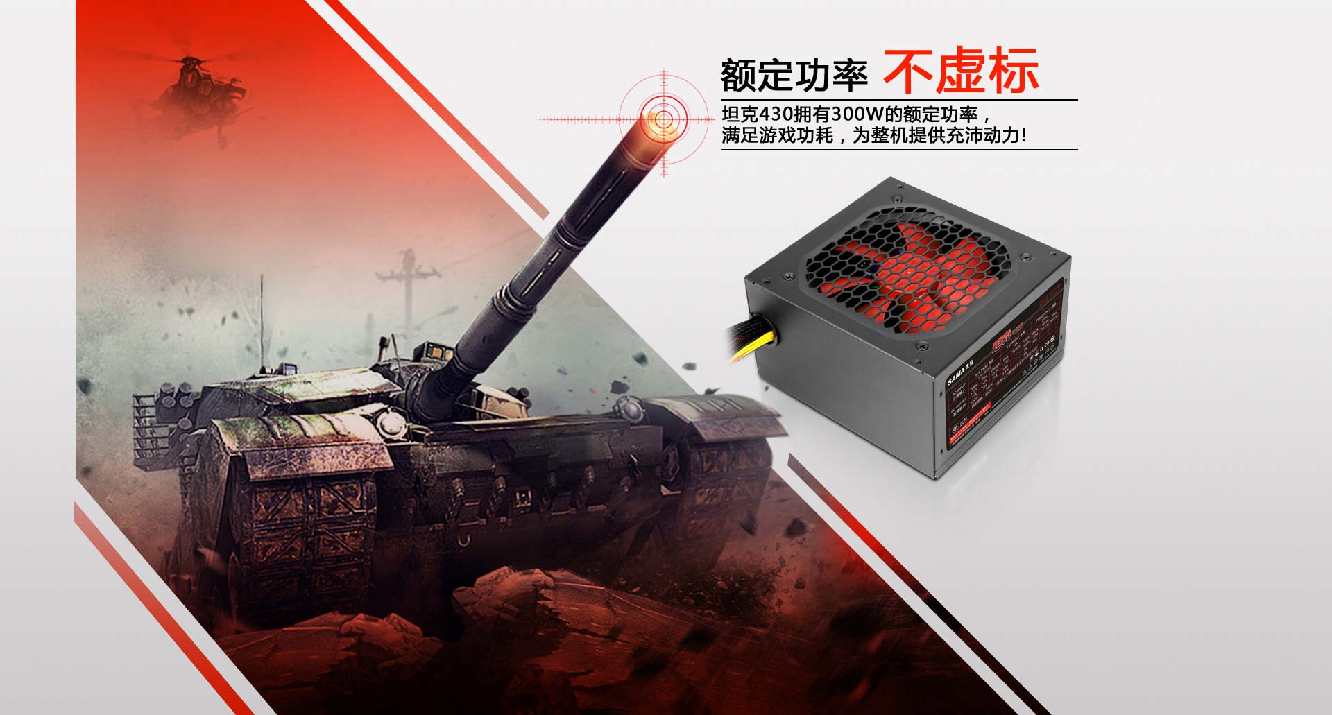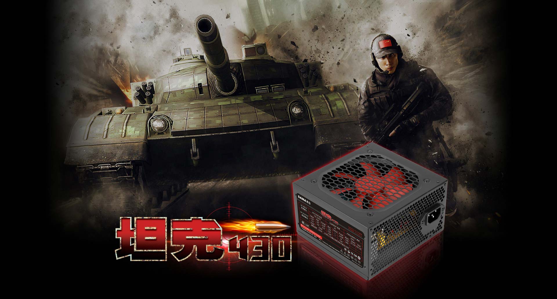 先馬SAMA 坦克430入門游戲電源(額定300W,單路+12V輸出,12CM靜音風扇,長線材)額定功率不虛標,+12V輸出很強勁,12CM散熱風扇清爽自在