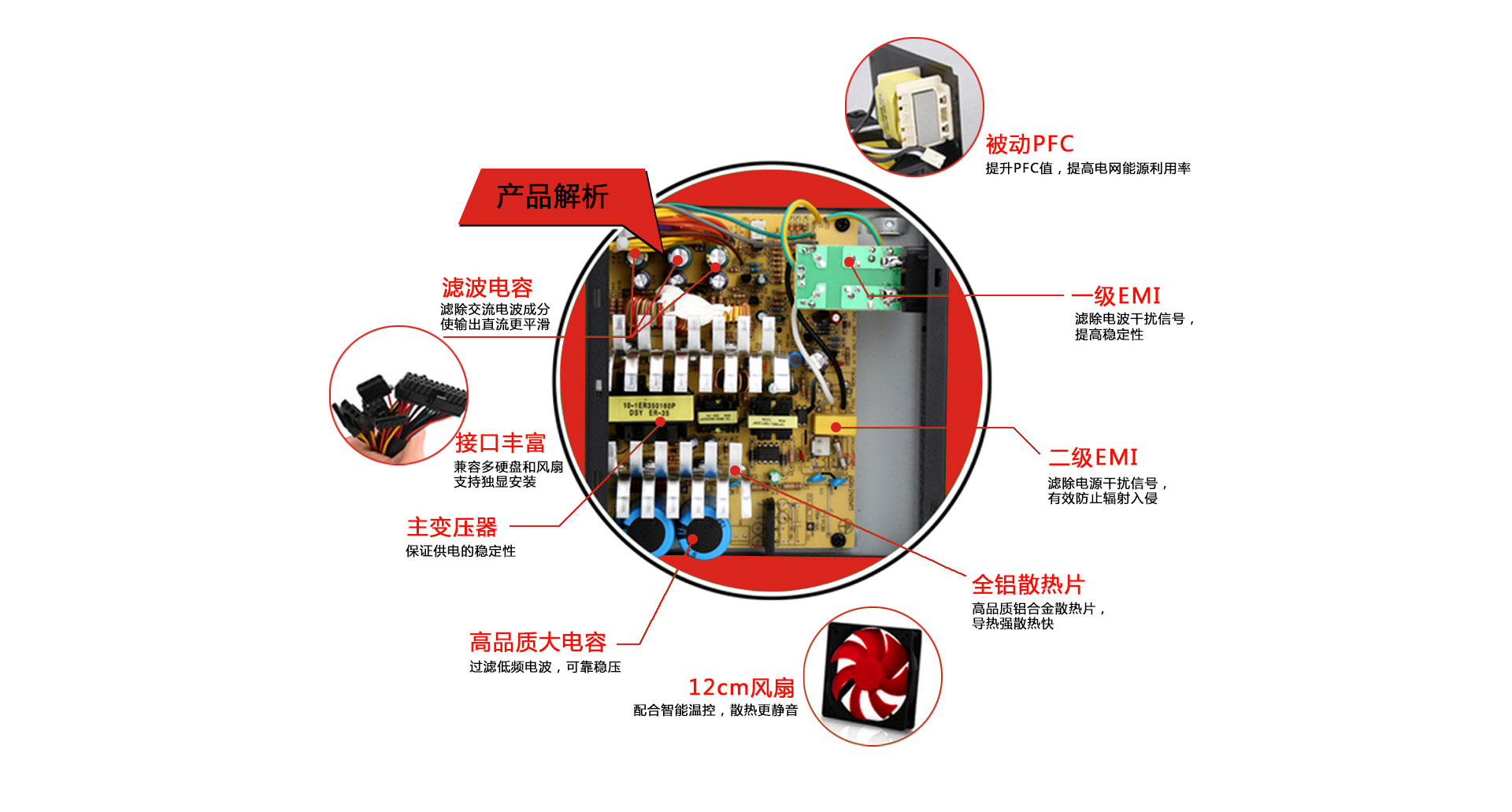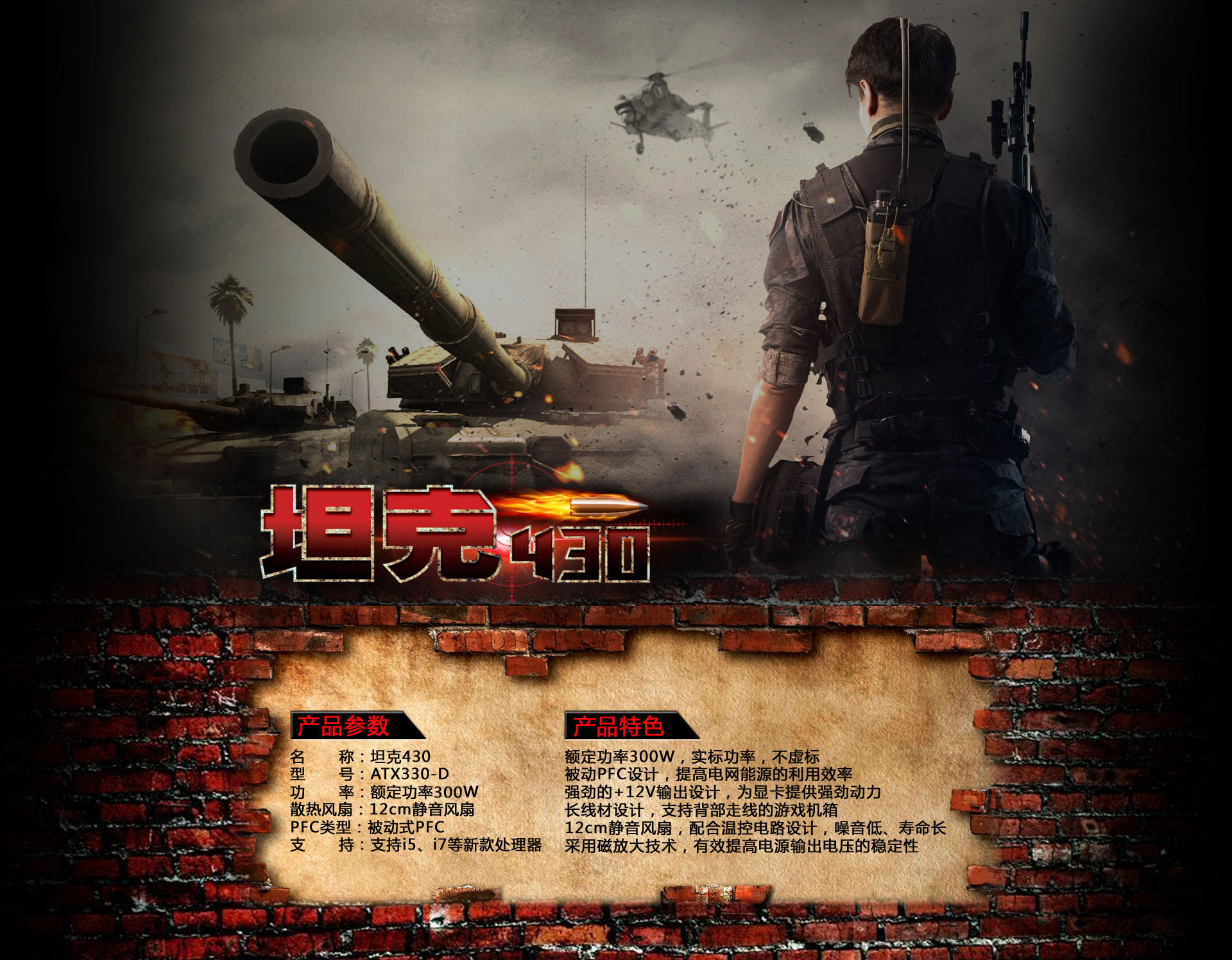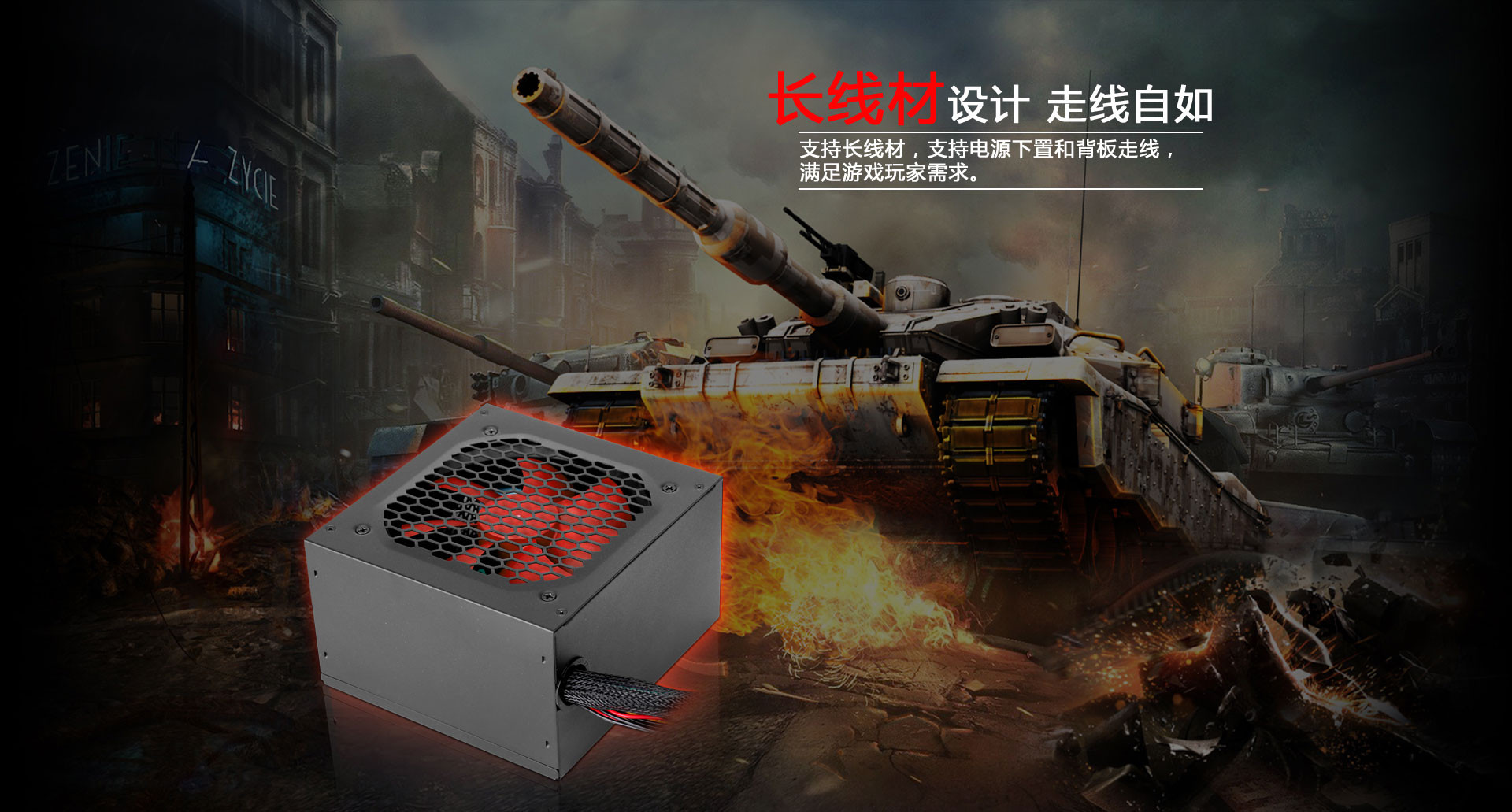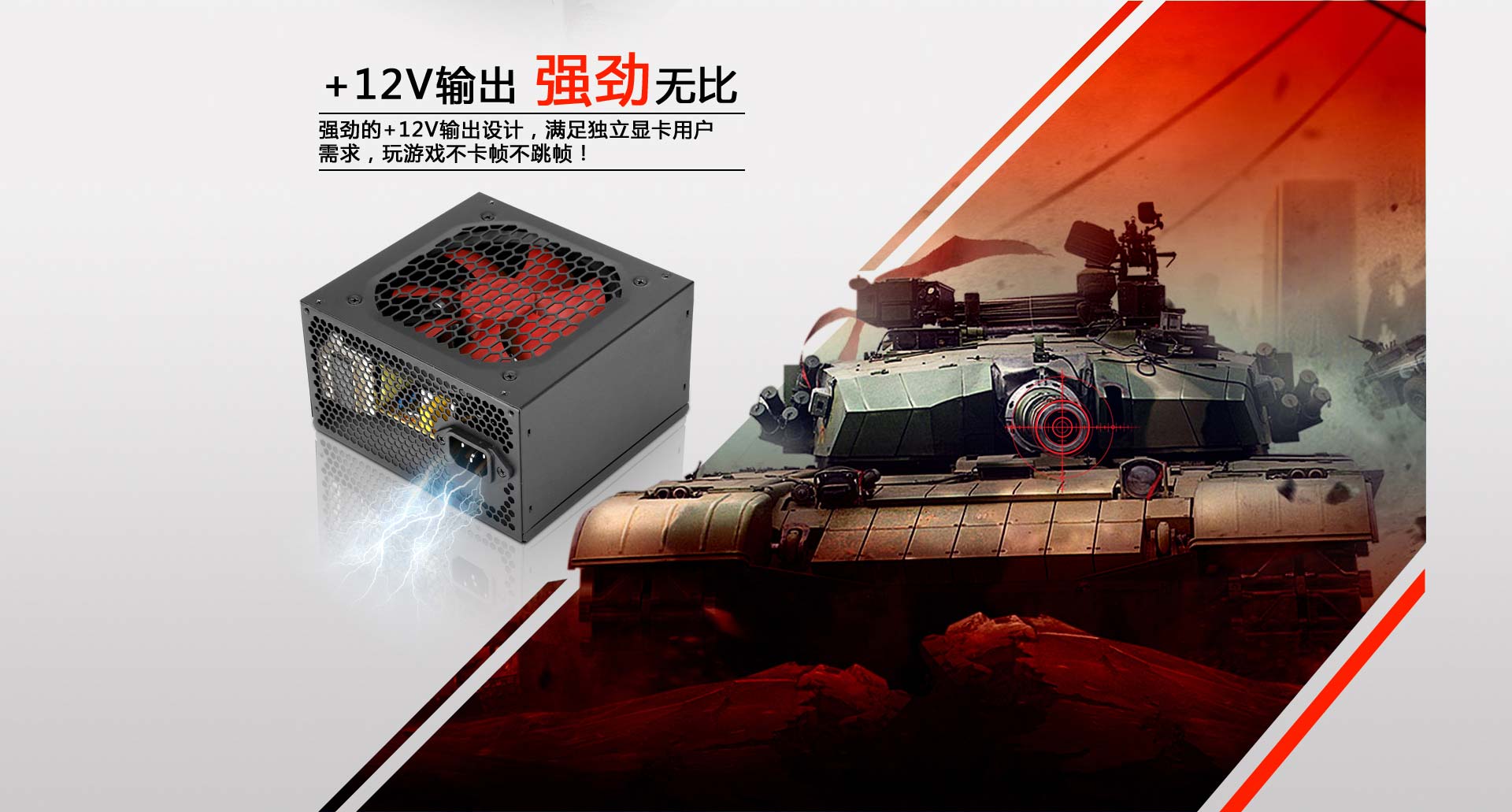 先馬SAMA 坦克430入門游戲電源(額定300W,單路+12V輸出,12CM靜音風扇,長線材)額定功率不虛標,+12V輸出很強勁,12CM散熱風扇清爽自在