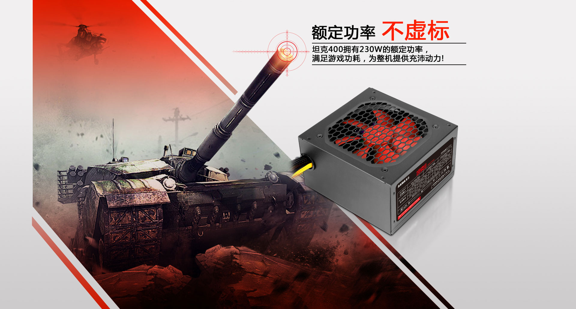 先馬SAMA 坦克400入門游戲電源(額定功率230W,12CM靜音風(fēng)扇,一級(jí)EMI,被動(dòng)PFC,長(zhǎng)線材)額定功率不虛標(biāo),12CM散熱風(fēng)扇清爽自在