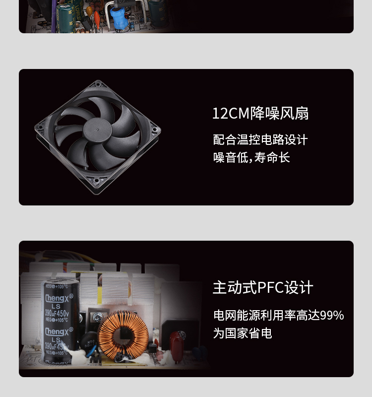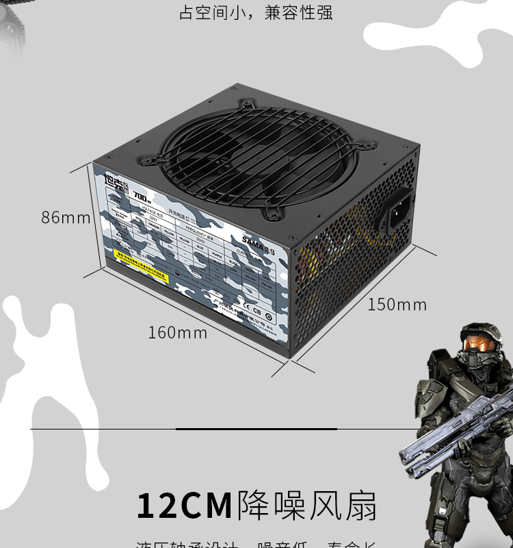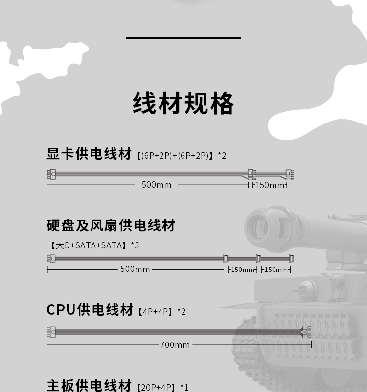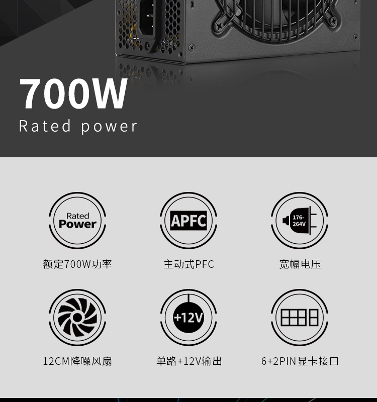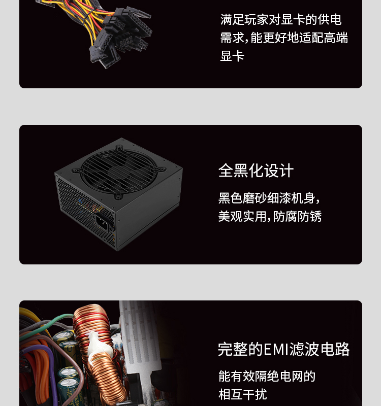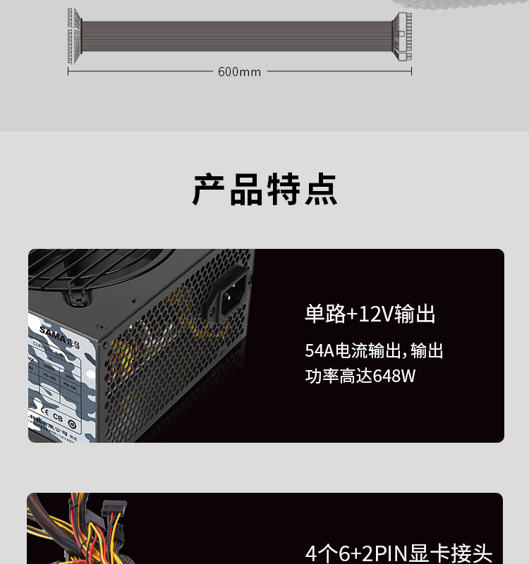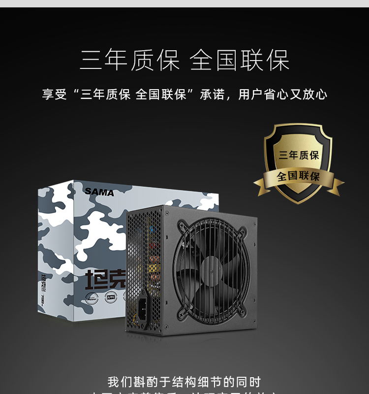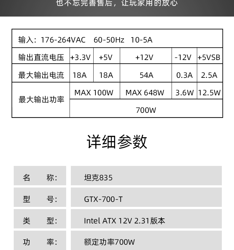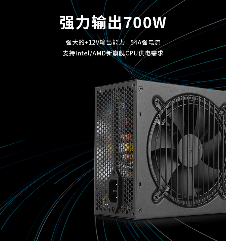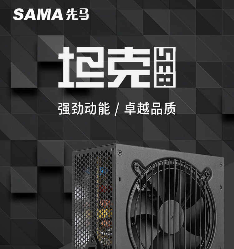 先馬SAMA 坦克835高級游戲電源(額定700W,+12V輸出,主動PFC,12CM靜音風扇)額定功率不虛標,+12V輸出很強勁,6+2Pin暢爽競技,12CM散熱風扇清爽自在