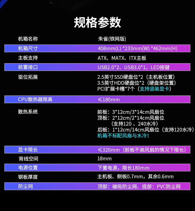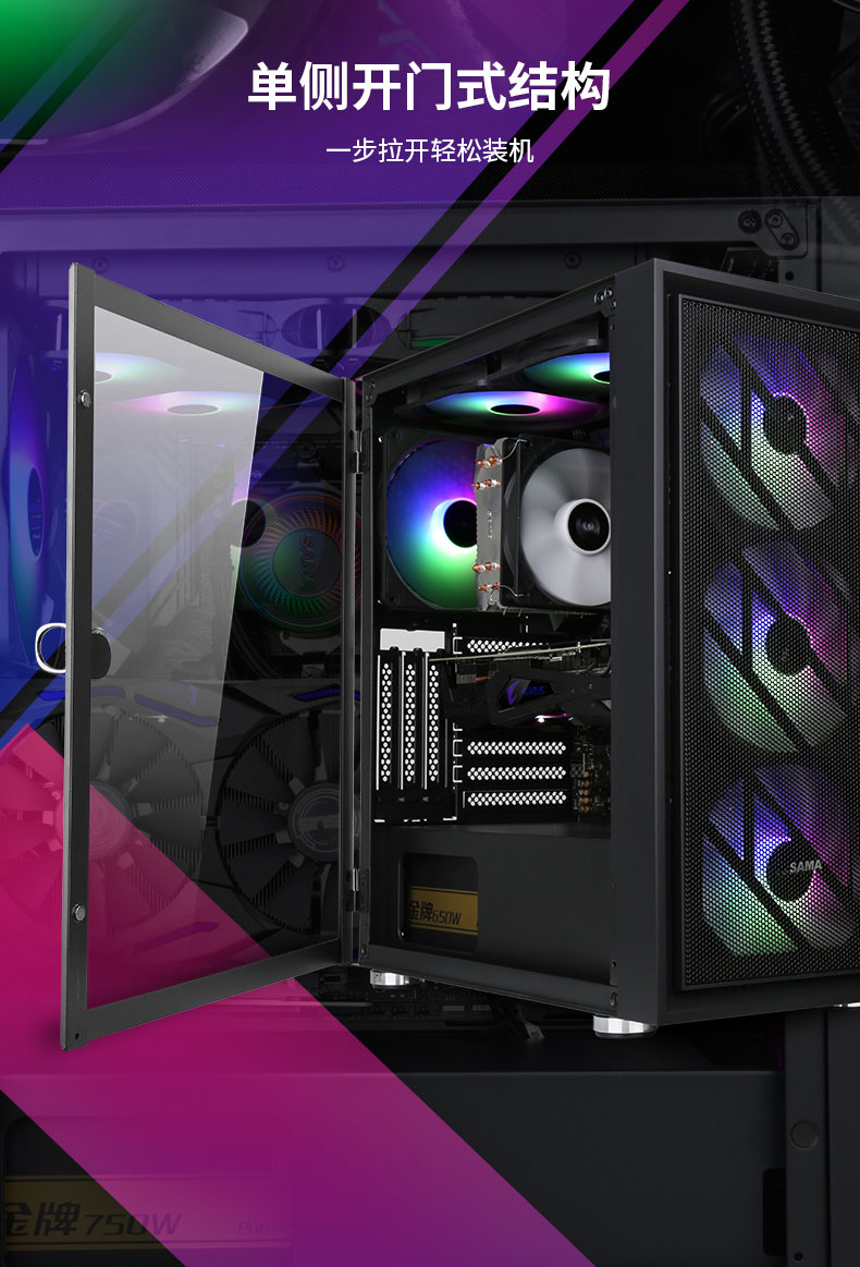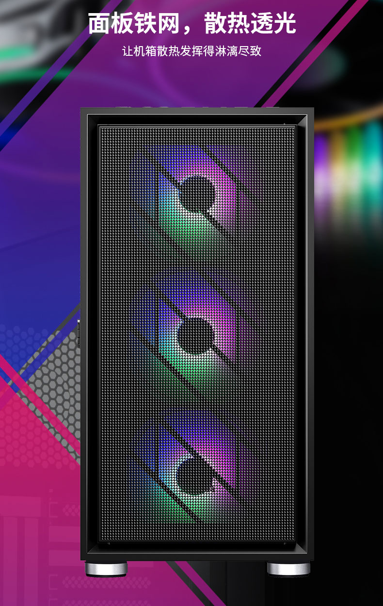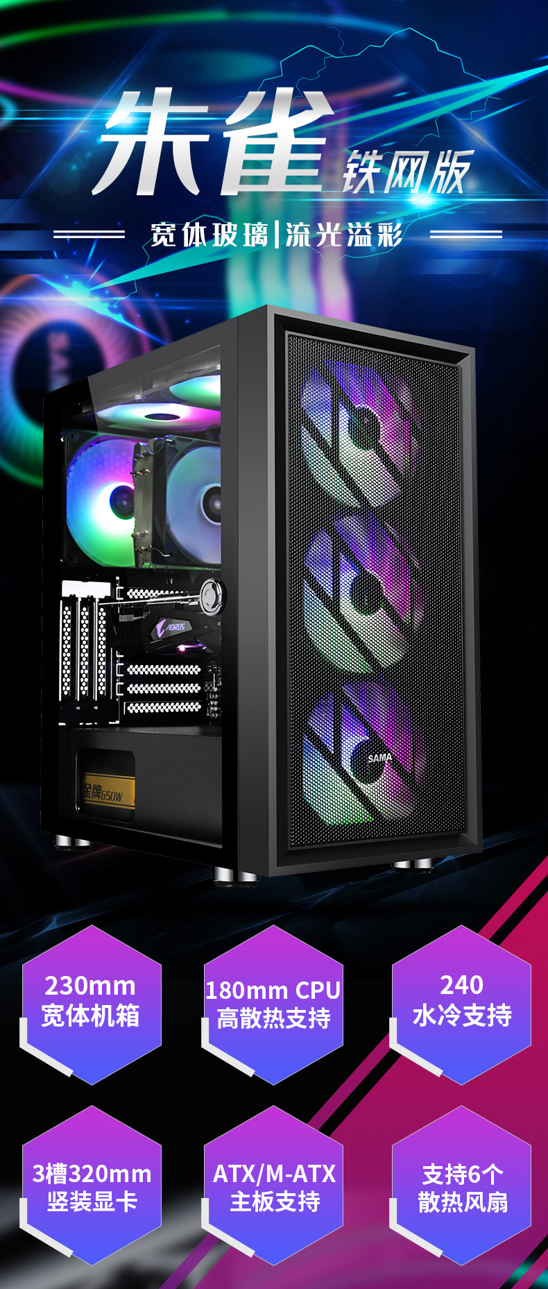 先馬SAMA 朱雀 鐵網版 精品游戲機箱(簡約面板,兼容顯卡,U3,單開門式側板)寬體玻璃,流光溢彩