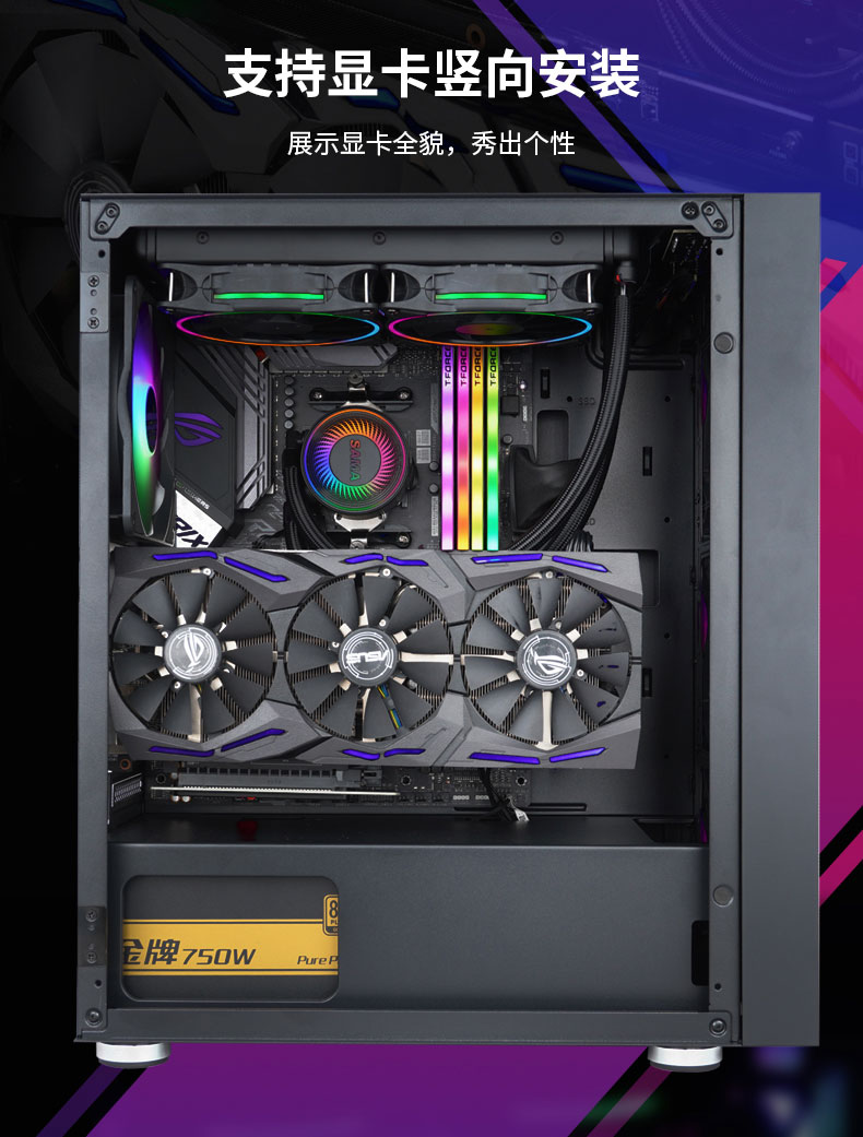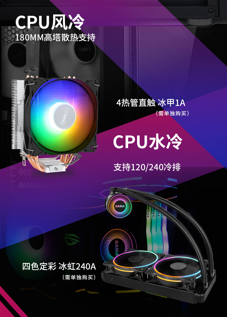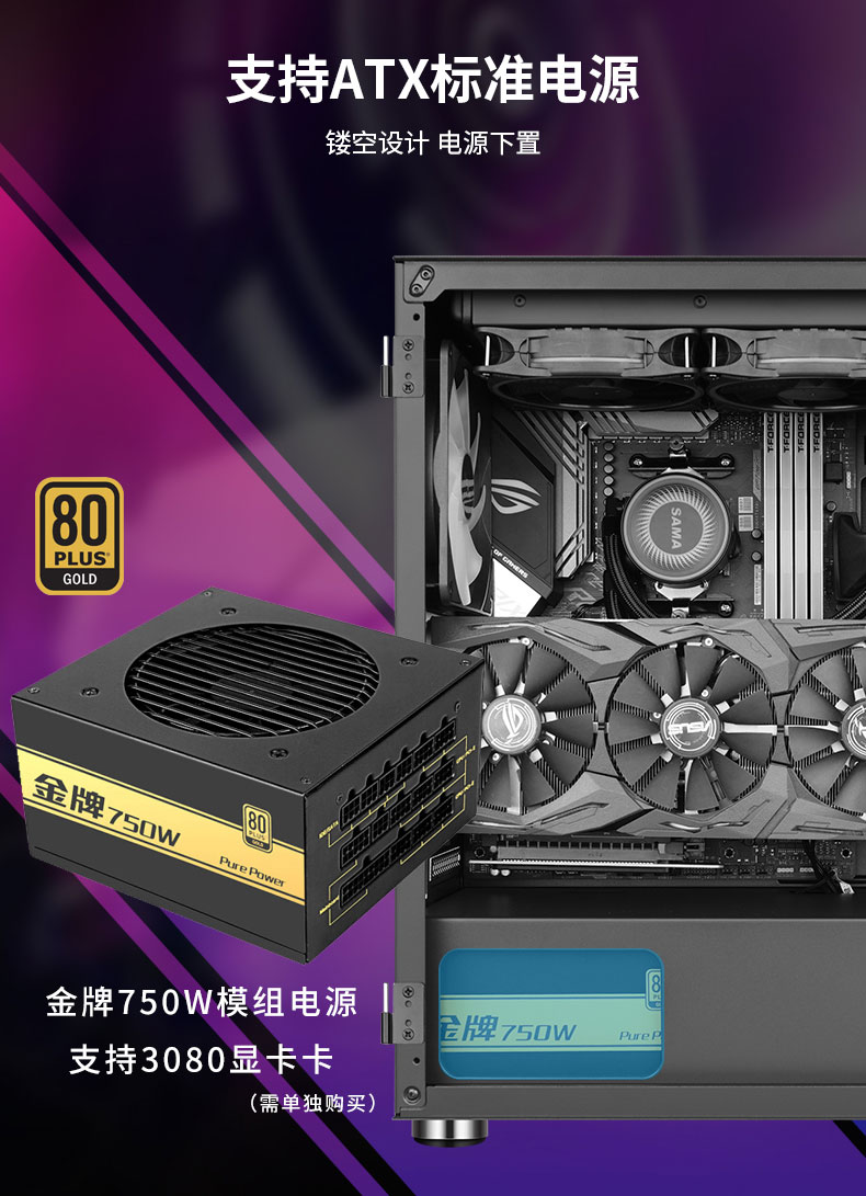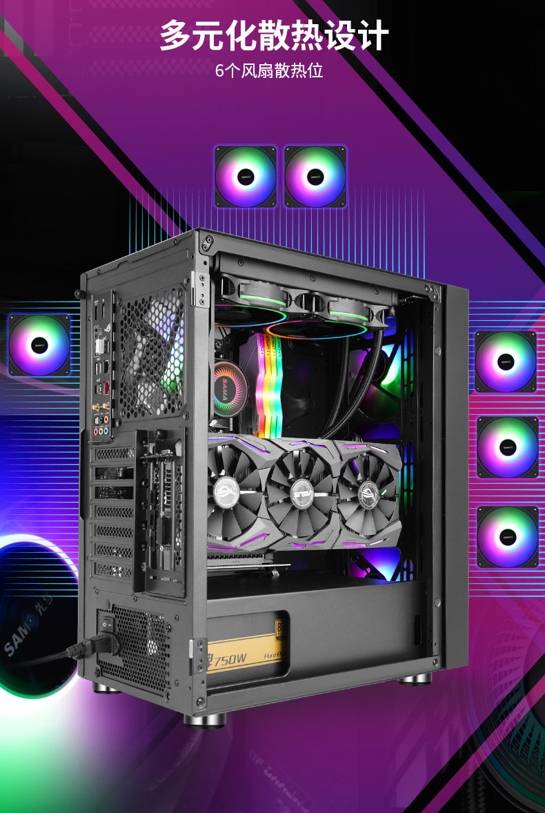 先馬SAMA 朱雀 鐵網版 精品游戲機箱(簡約面板,兼容顯卡,U3,單開門式側板)寬體玻璃,流光溢彩