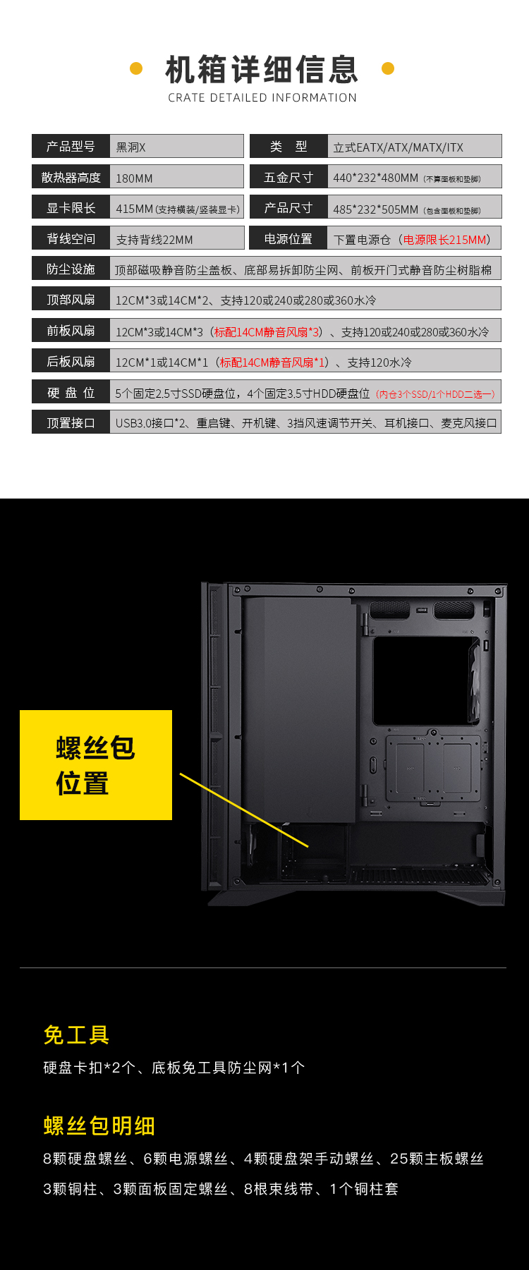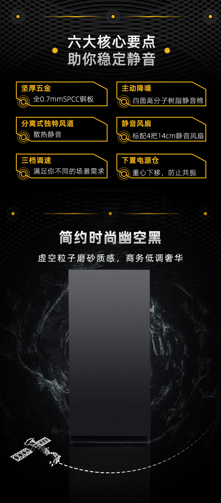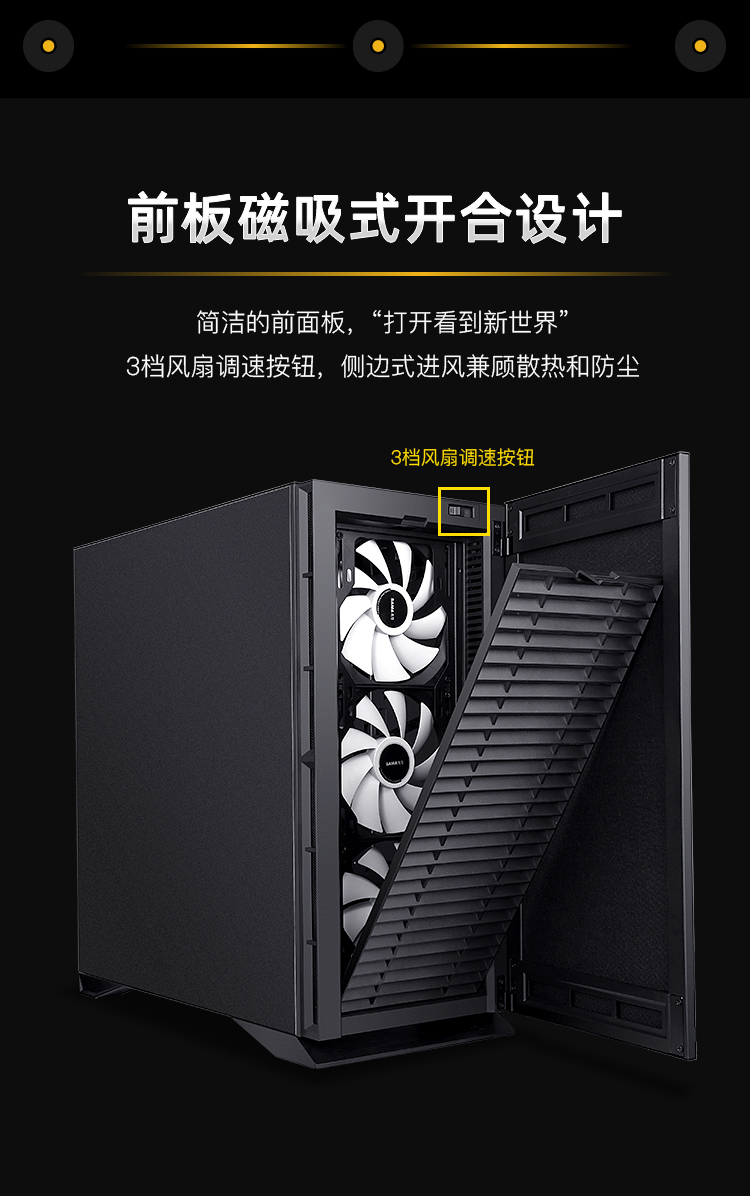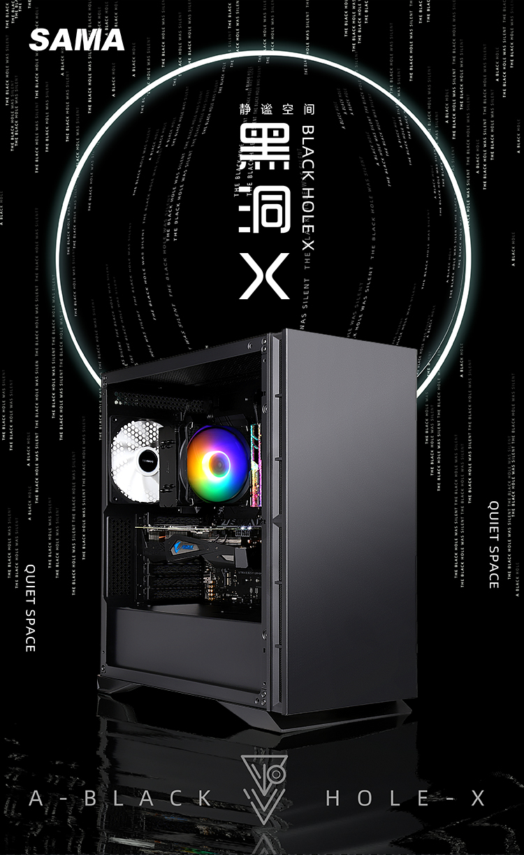 先馬SAMA 黑洞X 精品靜音機箱(雙U3,風扇調速器,翻門式面板,高分子樹脂吸音棉)無懼硬件挑戰,兼容絕不手軟!黑洞-主動靜音機箱