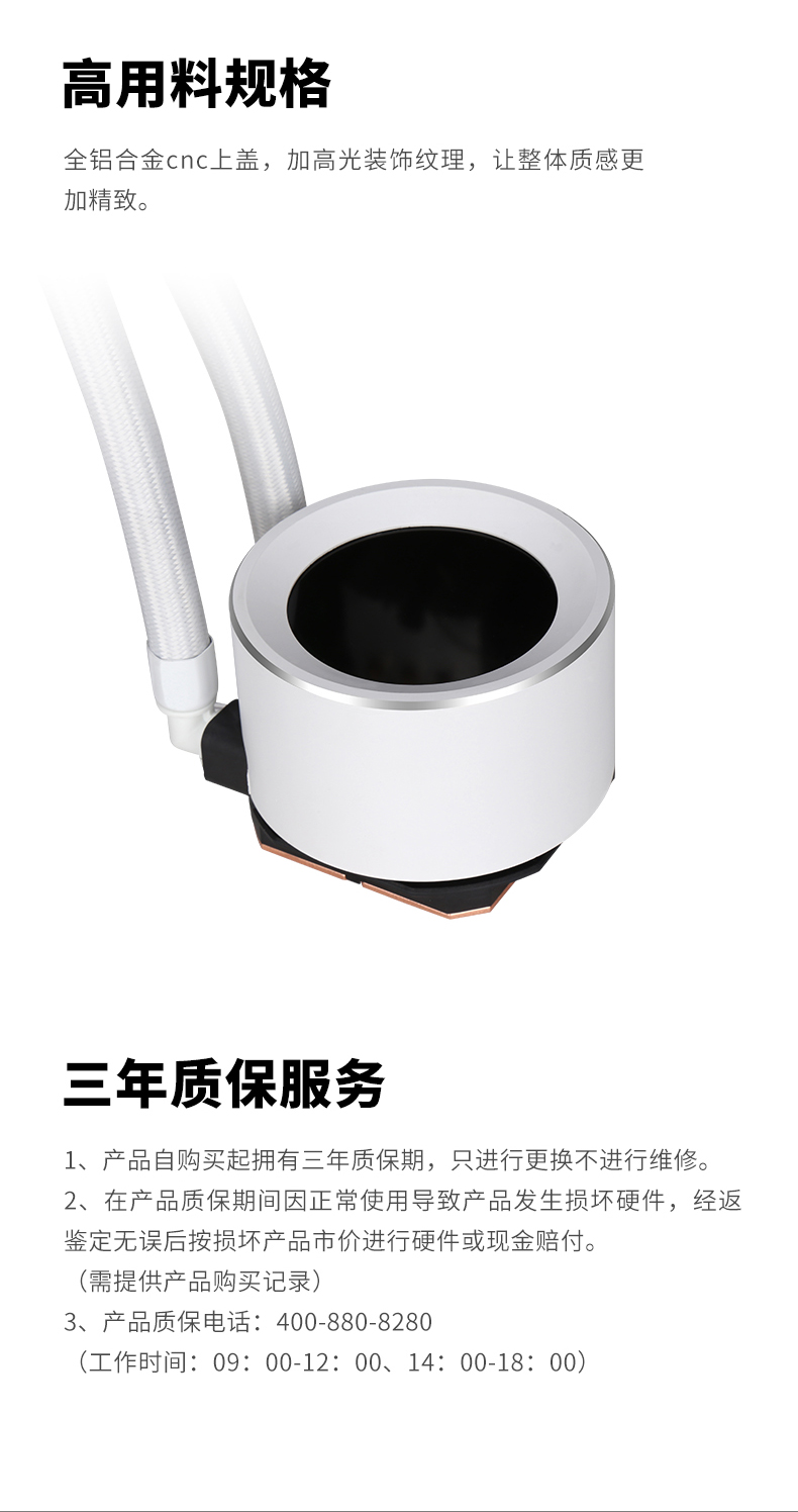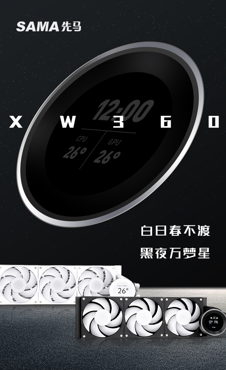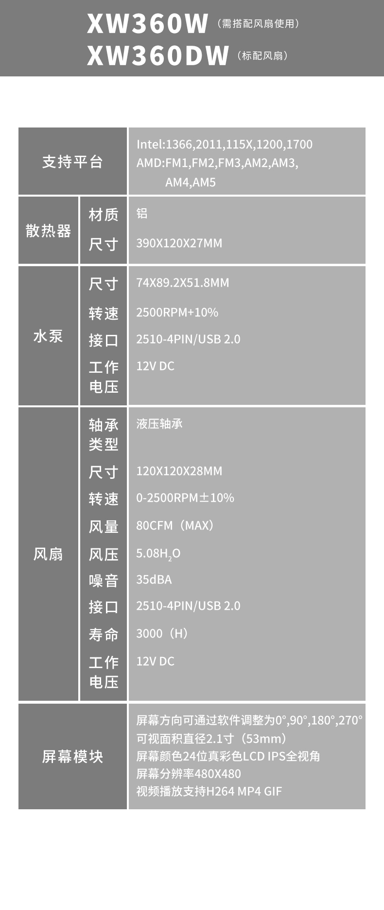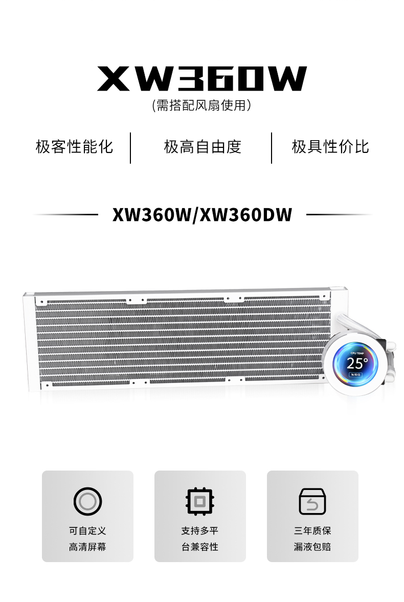 XW360W(無風扇版)白色 一體式機箱水冷散熱器 自定義IPS屏/ARGB燈光/高性能冷排/高規格用料