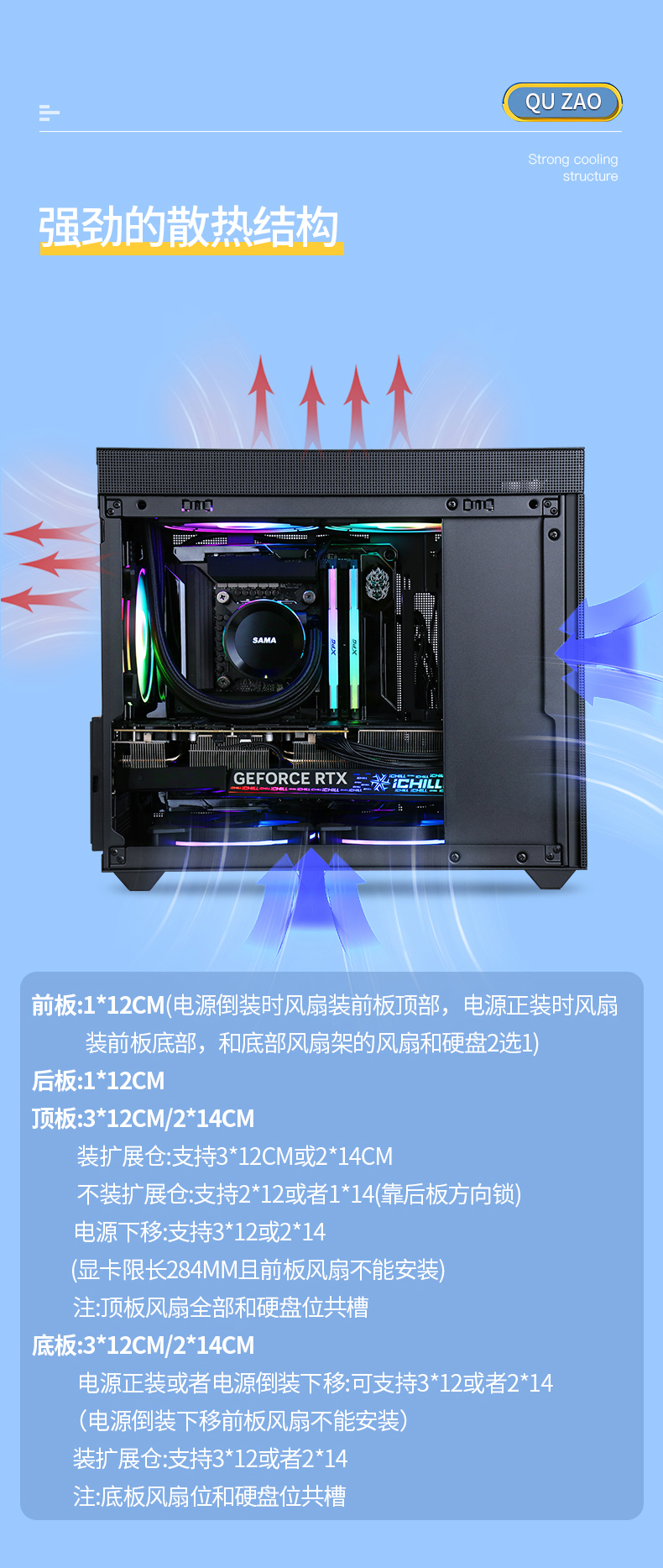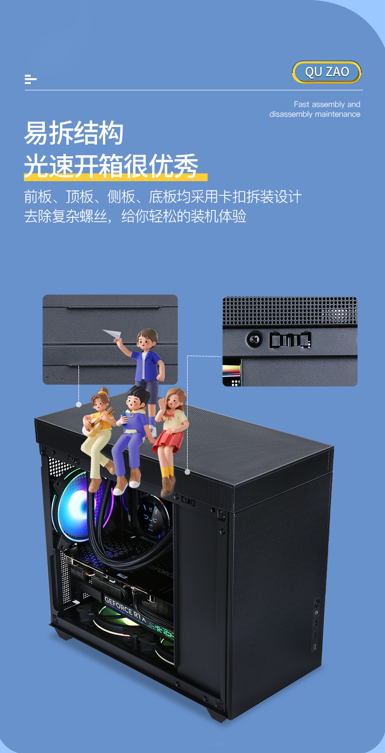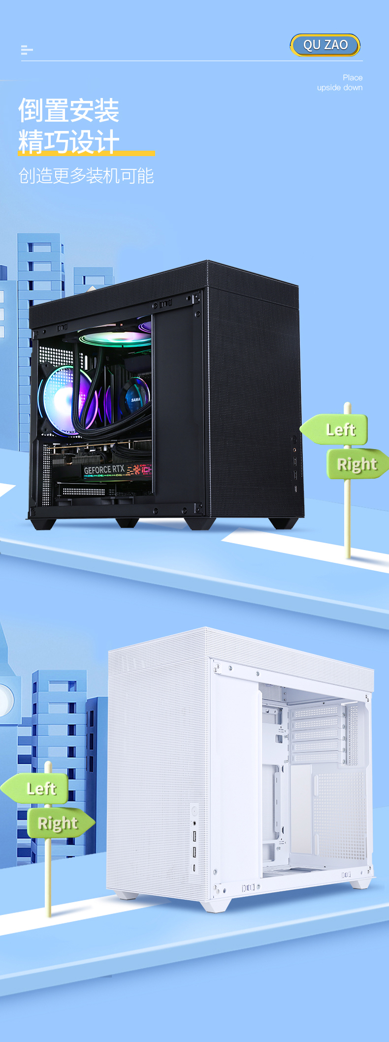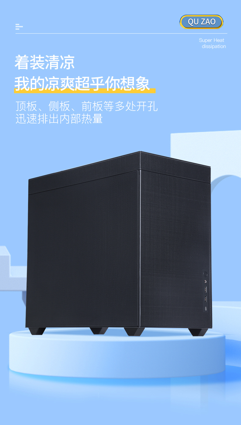 小機(jī)箱 臺(tái)式機(jī) 迷你玩具桌搭機(jī)箱 桌面電腦M-atx水冷開放式便攜主機(jī)箱 先馬趣造 黑色