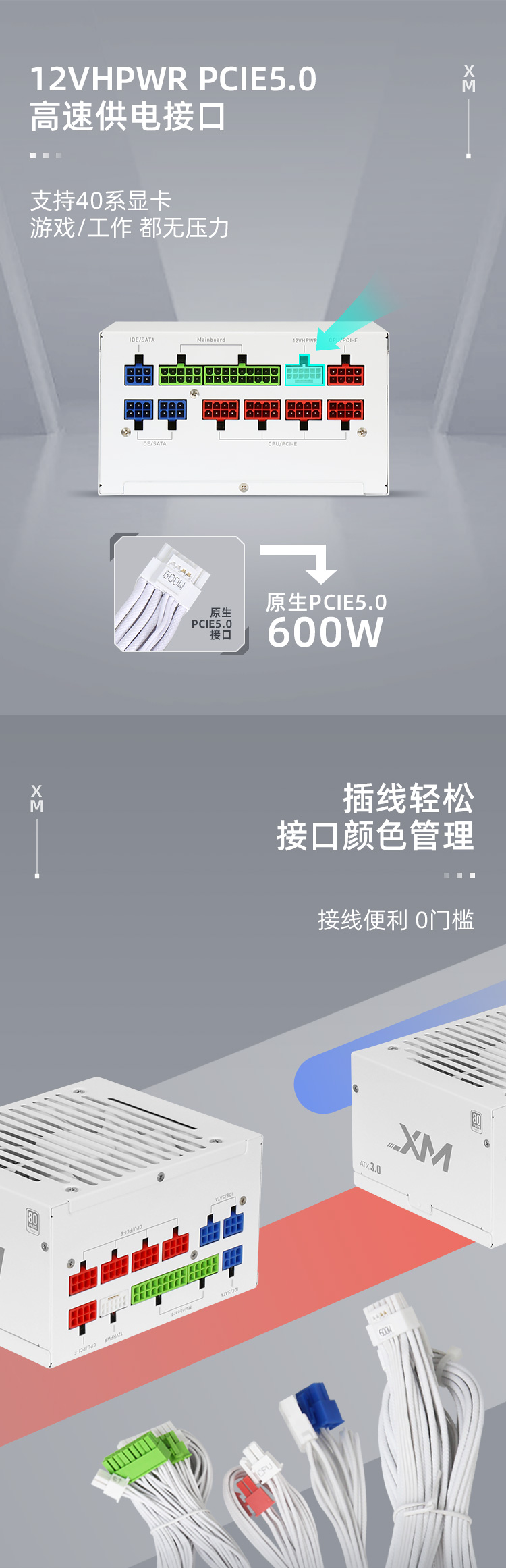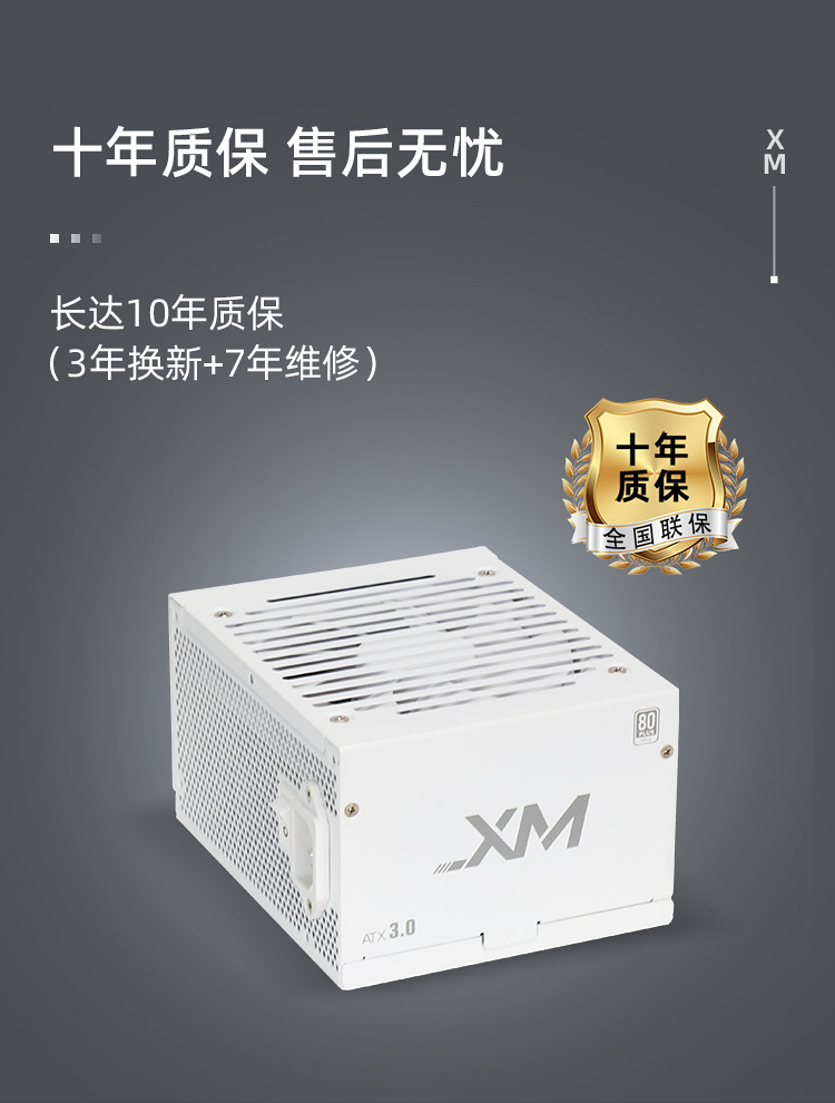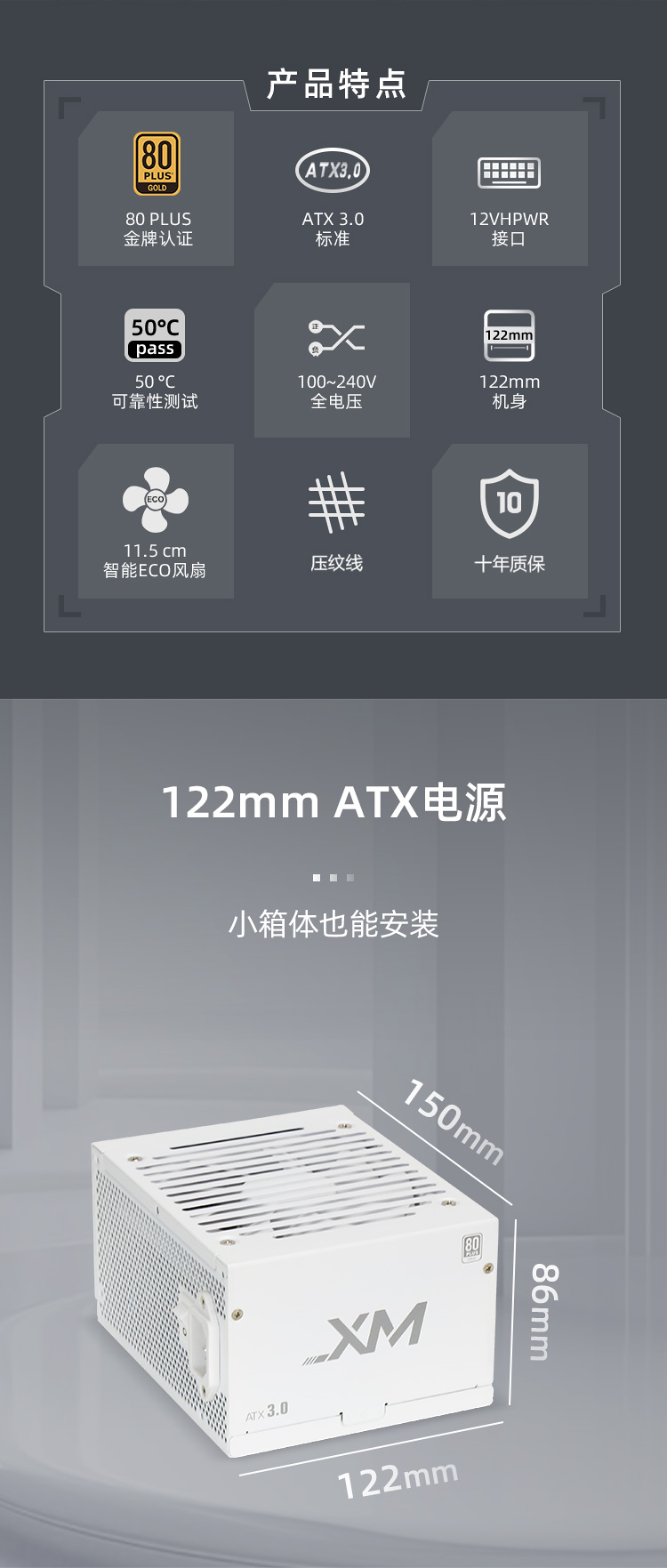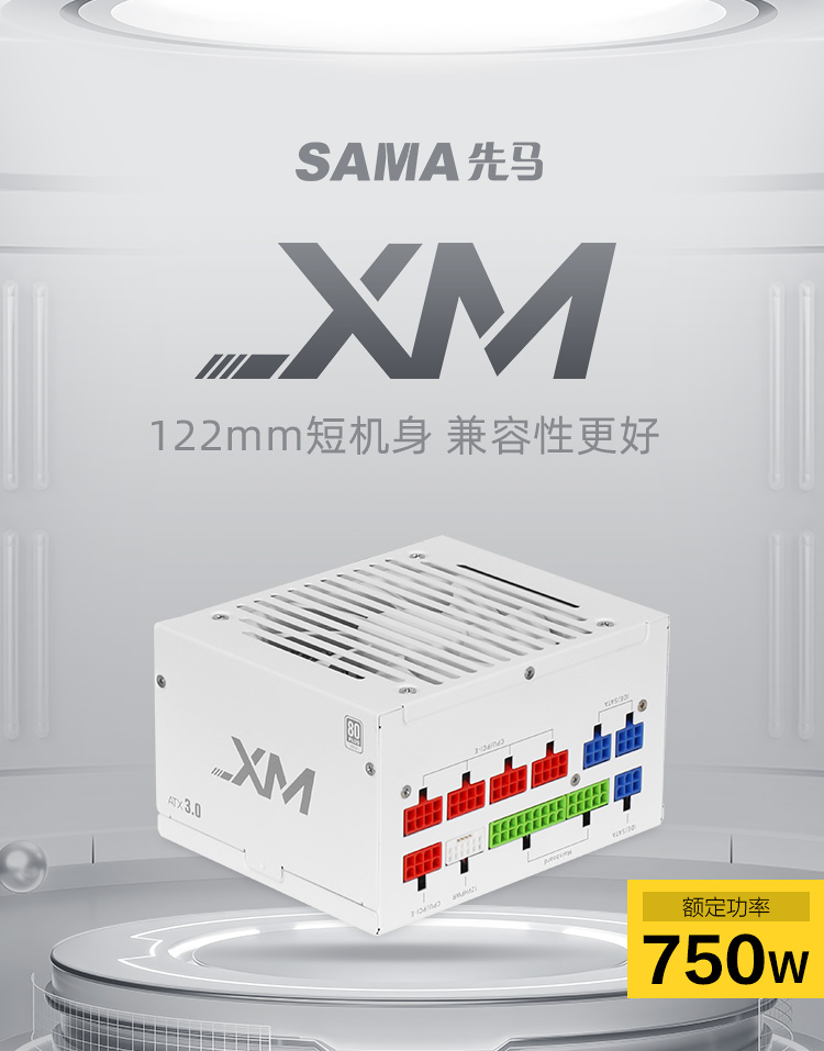 先馬(SAMA)XM750W白色臺式機箱窄體電源 ATX3.0標準/122mm短機身/80PLUS金牌/壓紋線/ECO風扇/多重安全認證