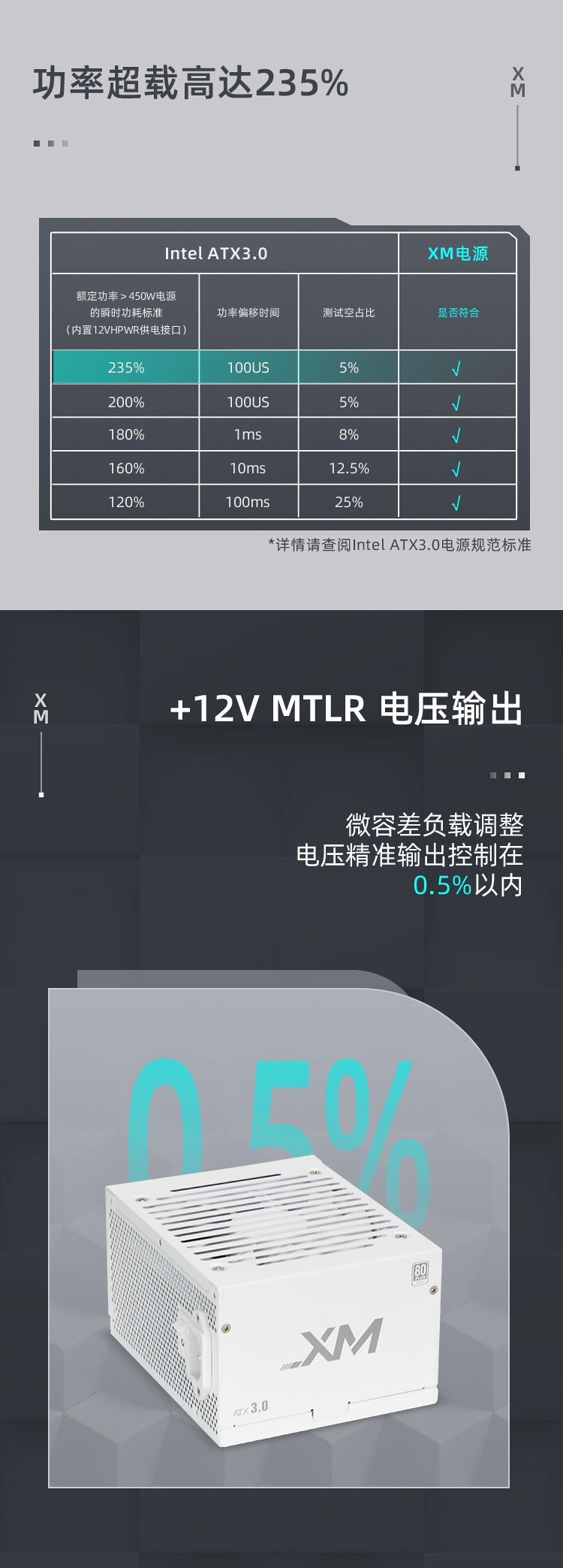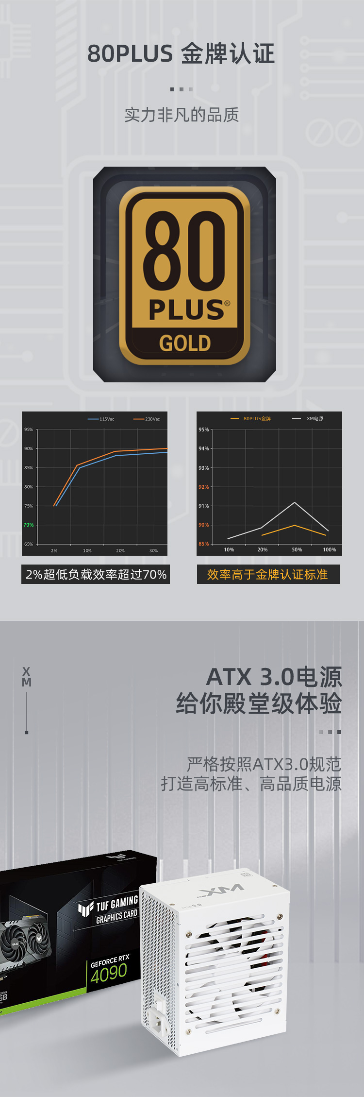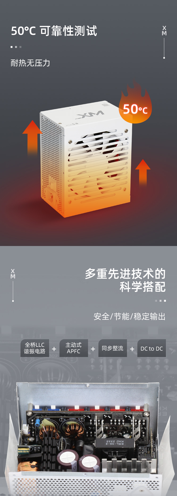 先馬(SAMA)XM750W白色臺式機箱窄體電源 ATX3.0標準/122mm短機身/80PLUS金牌/壓紋線/ECO風扇/多重安全認證