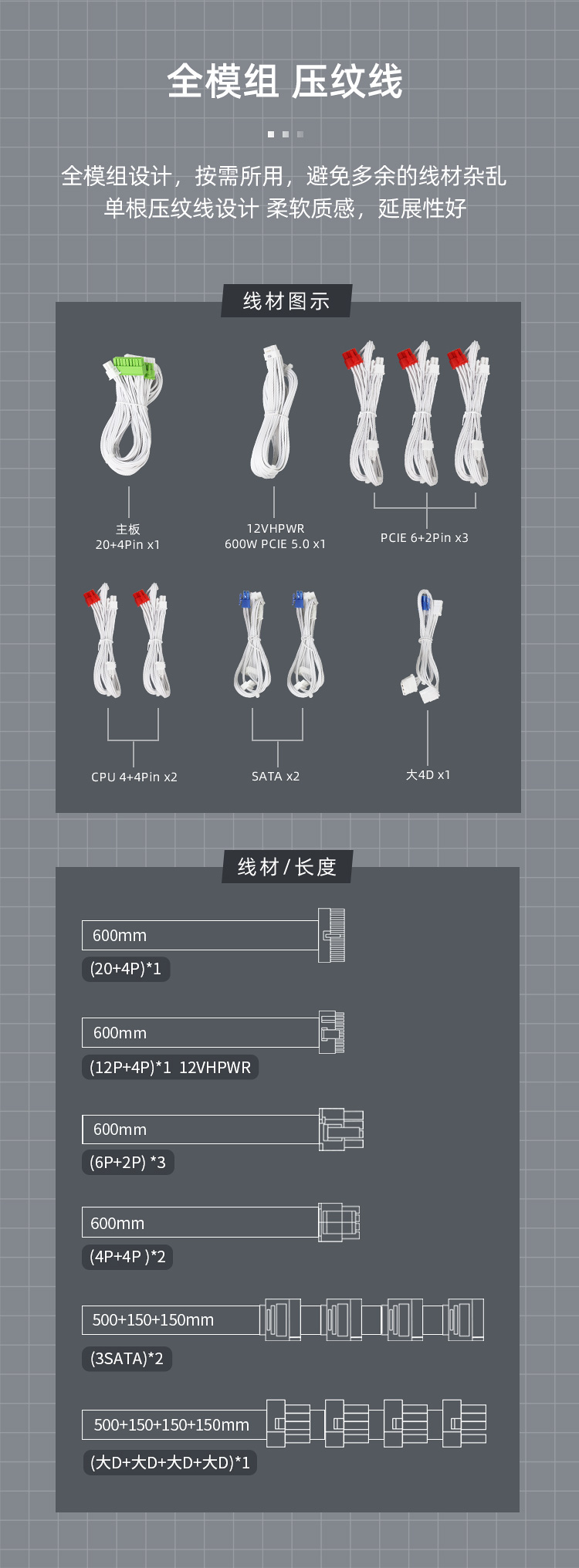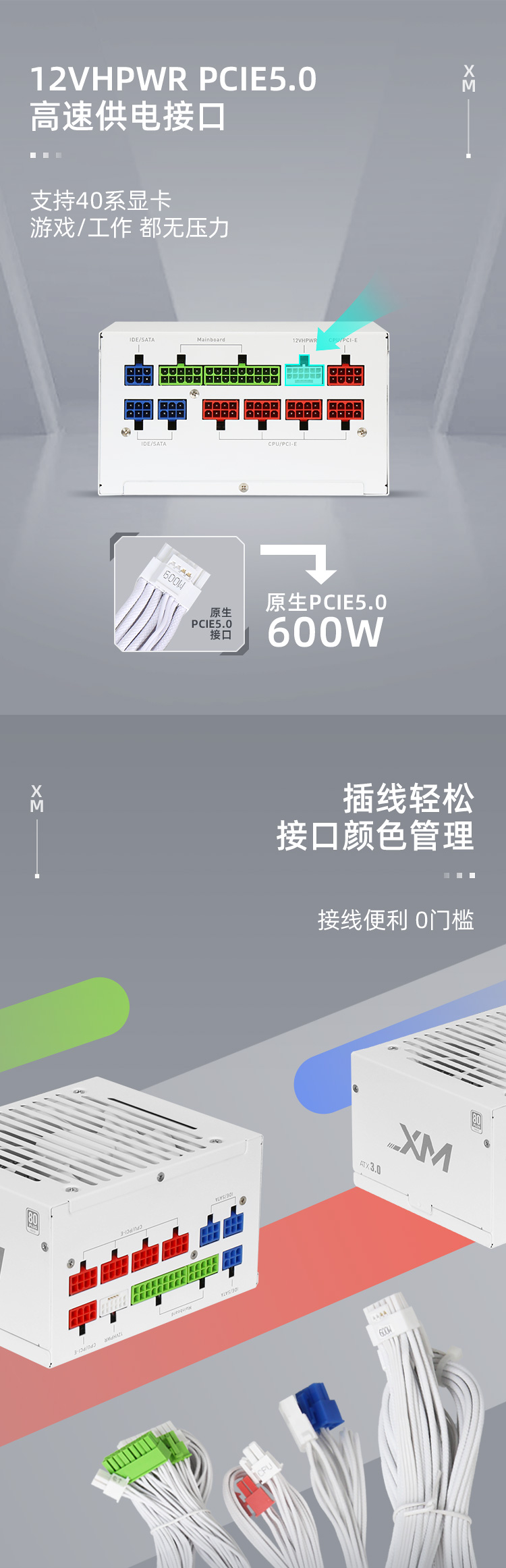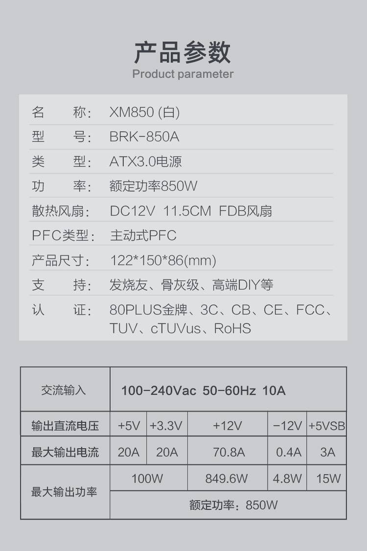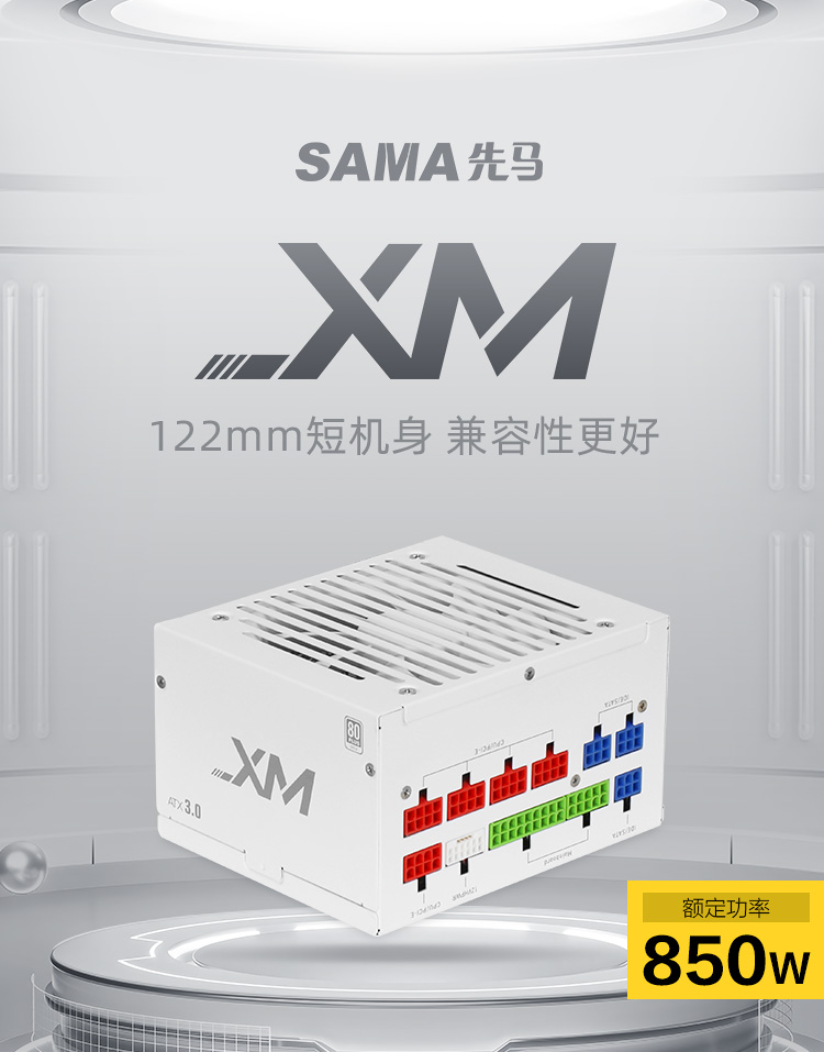 先馬(SAMA)XM850W白色臺式機箱窄體電源 ATX3.0標(biāo)準(zhǔn)/122mm短機身/80PLUS金牌/壓紋線/ECO風(fēng)扇/多重安全認證