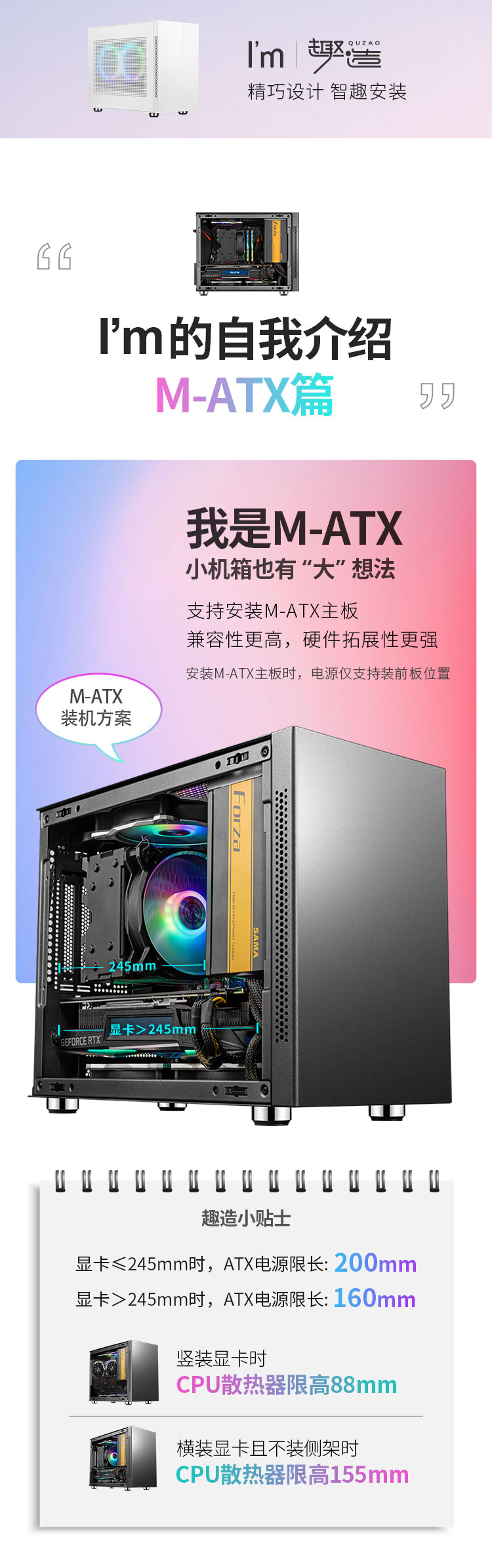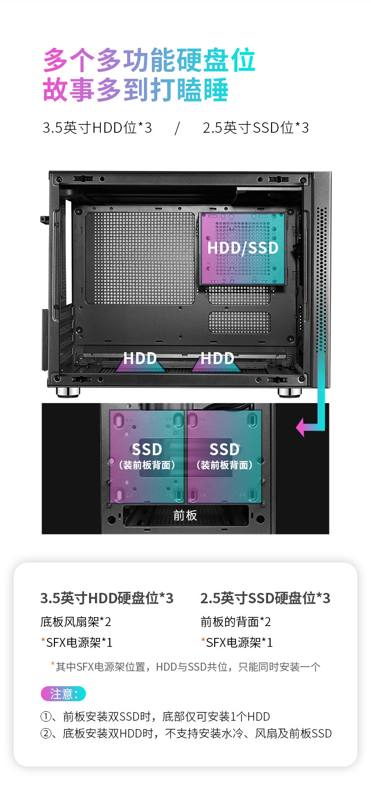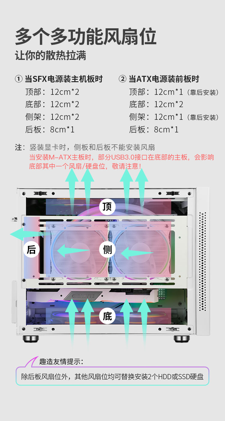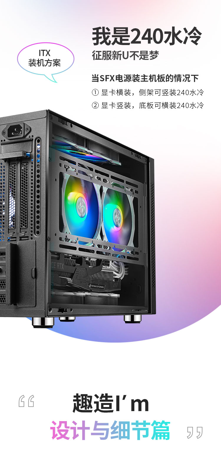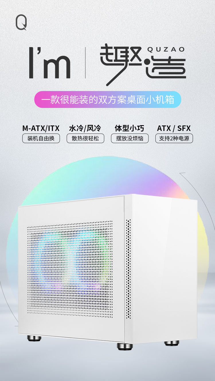 先馬SAMA 趣造 I’M(白) 精品Micro機(jī)箱(支持M-ATX或ITX主板,240水冷,豎裝顯卡,多硬盤位)一款很能裝的雙方案桌面小機(jī)箱