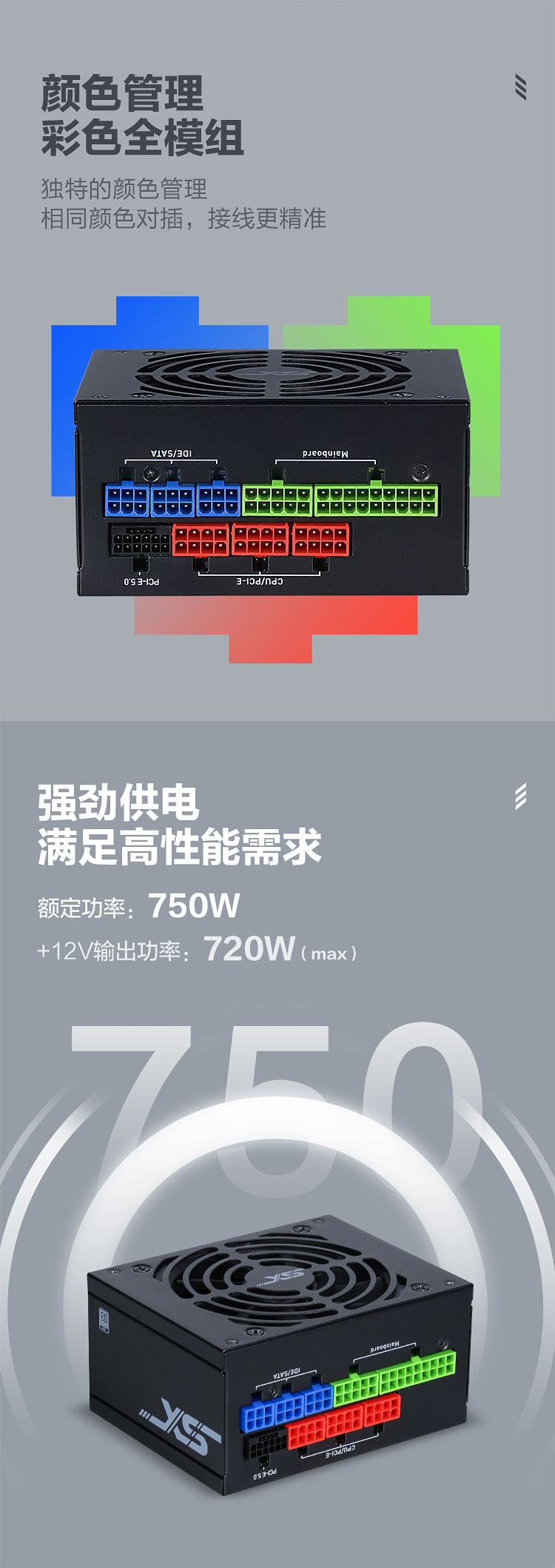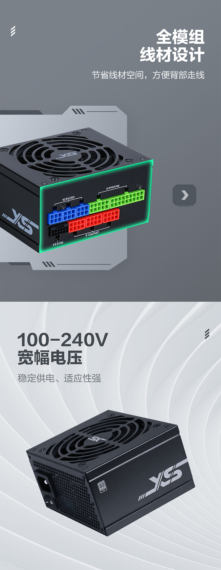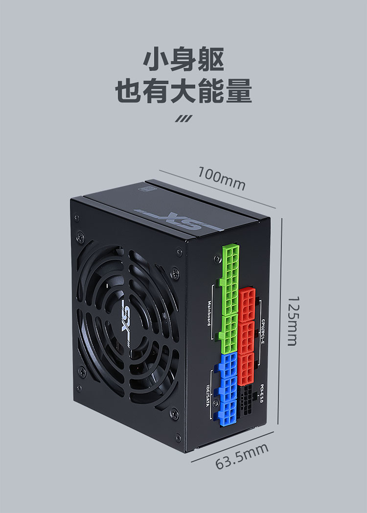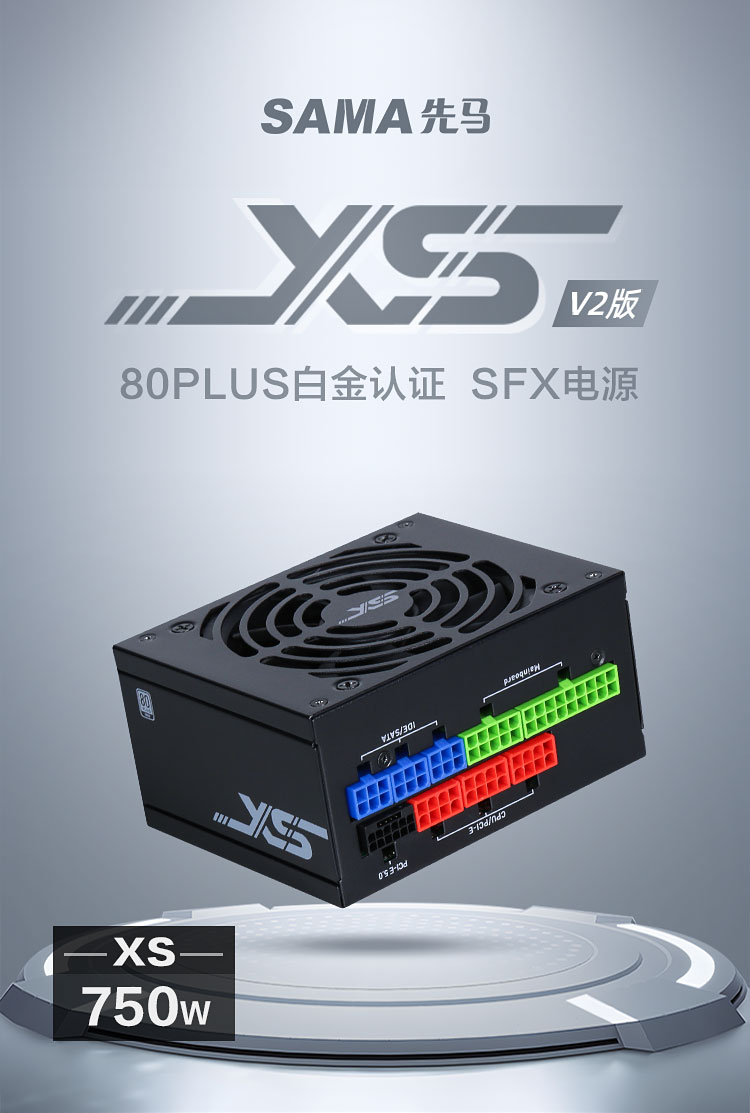 先馬(SAMA)XS750 白金牌全模組黑色SFX電腦電源750W PCI-E5.0接口/顏色管理/壓紋線(xiàn)/9cm溫控風(fēng)扇/FDB軸承