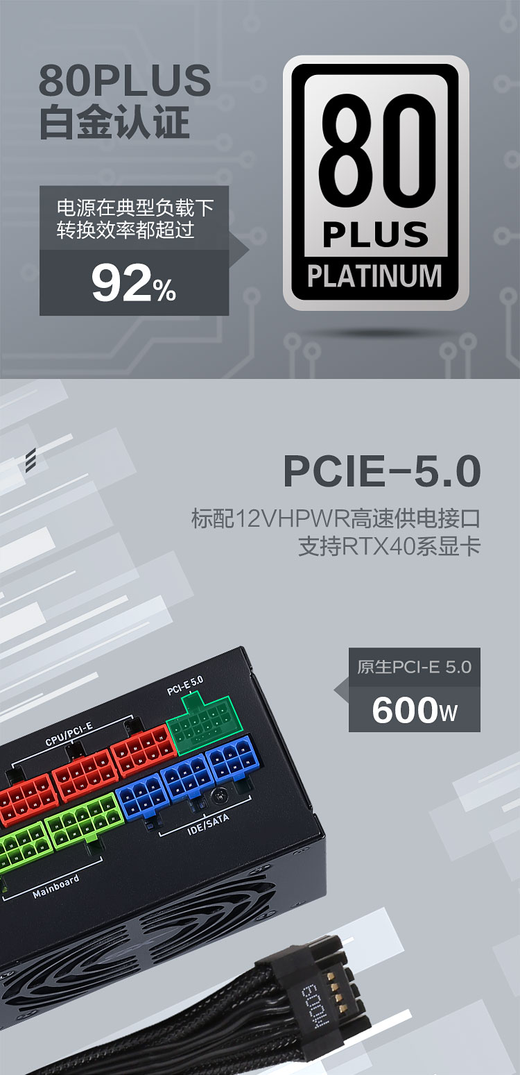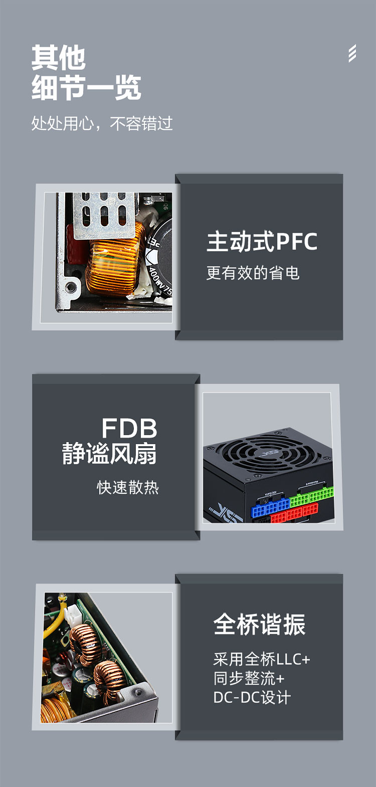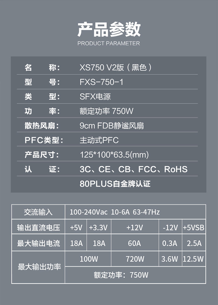 先馬(SAMA)XS750 白金牌全模組黑色SFX電腦電源750W PCI-E5.0接口/顏色管理/壓紋線(xiàn)/9cm溫控風(fēng)扇/FDB軸承