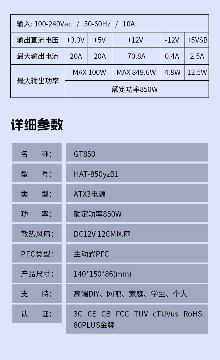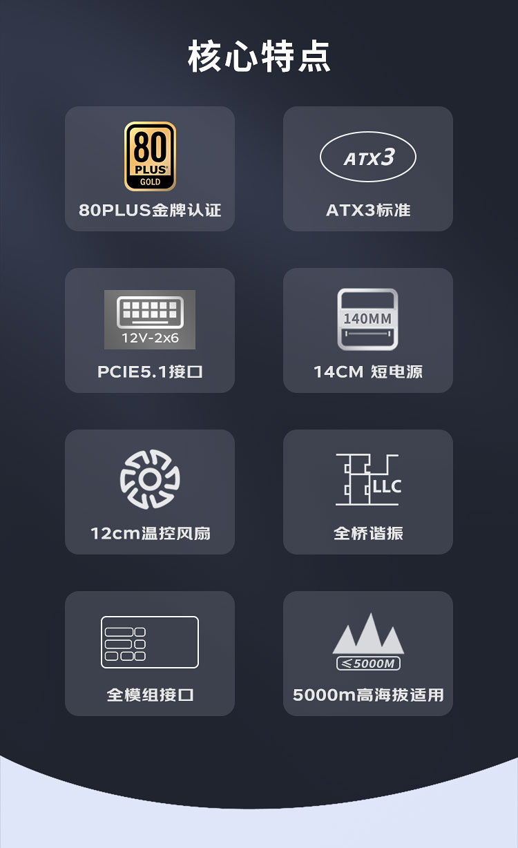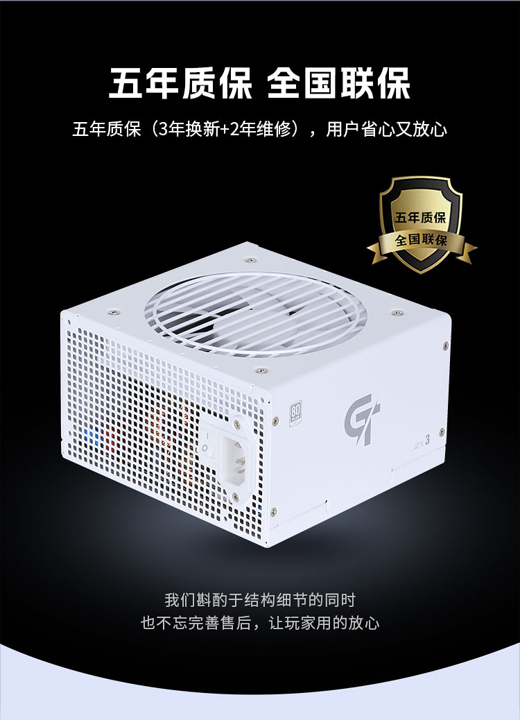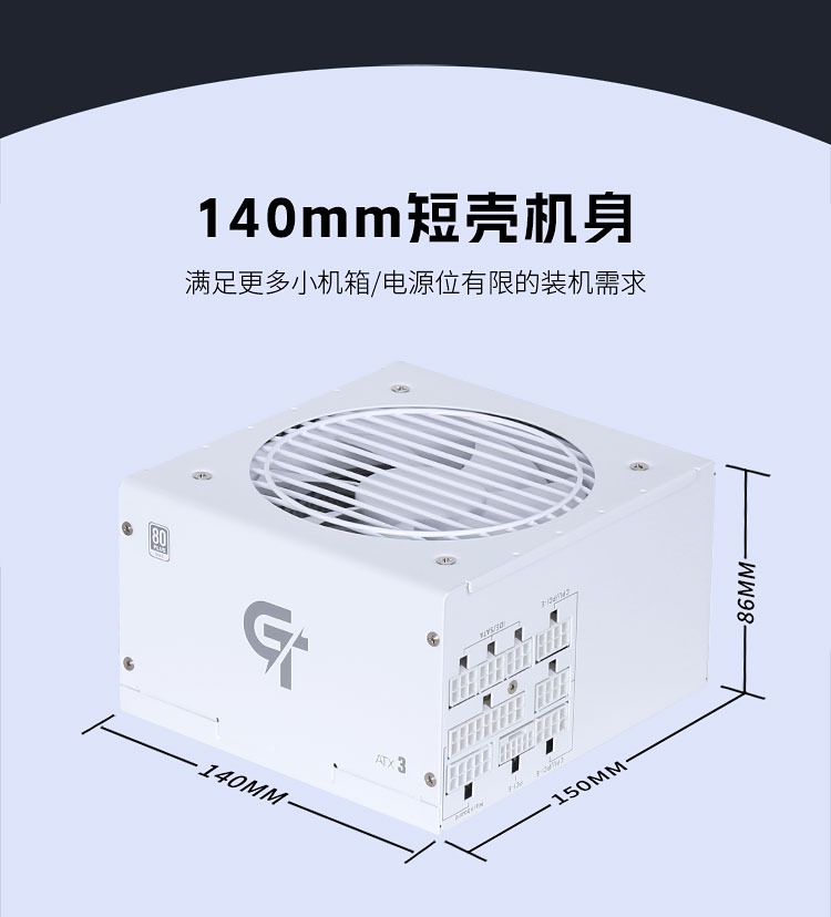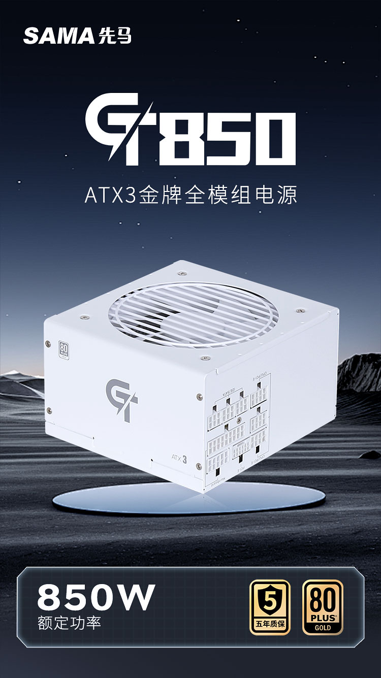 先馬(SAMA)GT850W白色 ATX3臺式電腦電源 12V-2X6顯卡供電/80PLUS金牌電源/全模組/14CM短機身/5000m高海拔